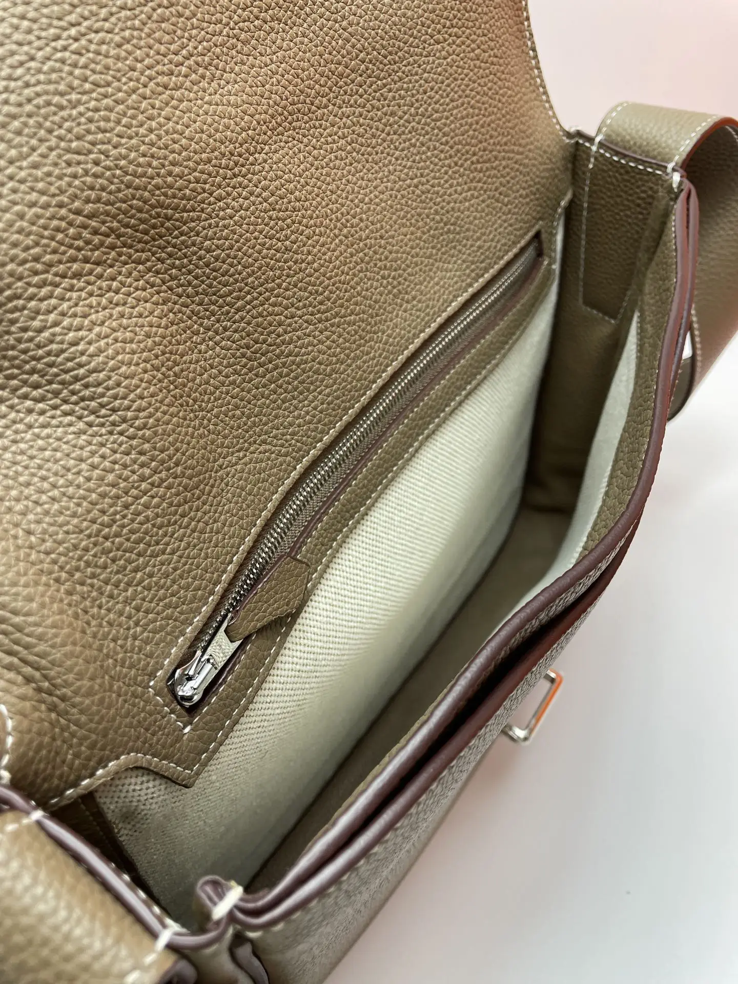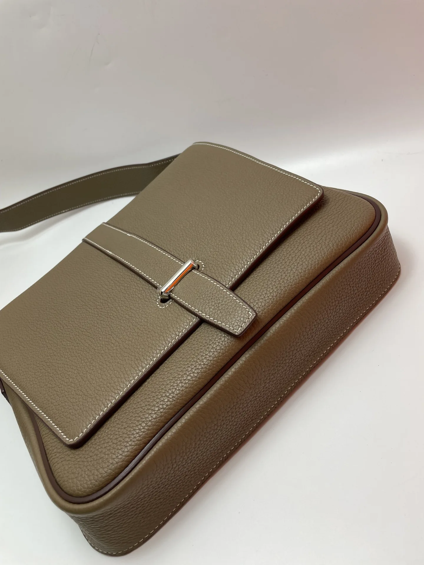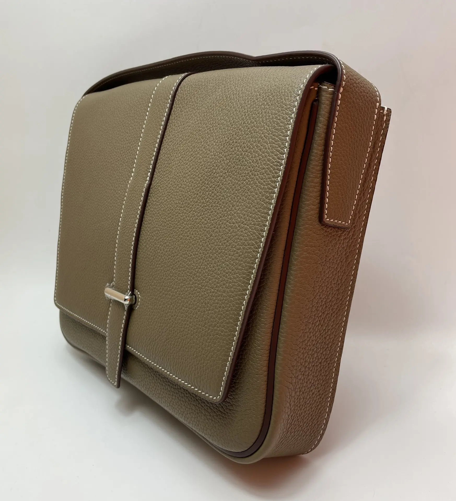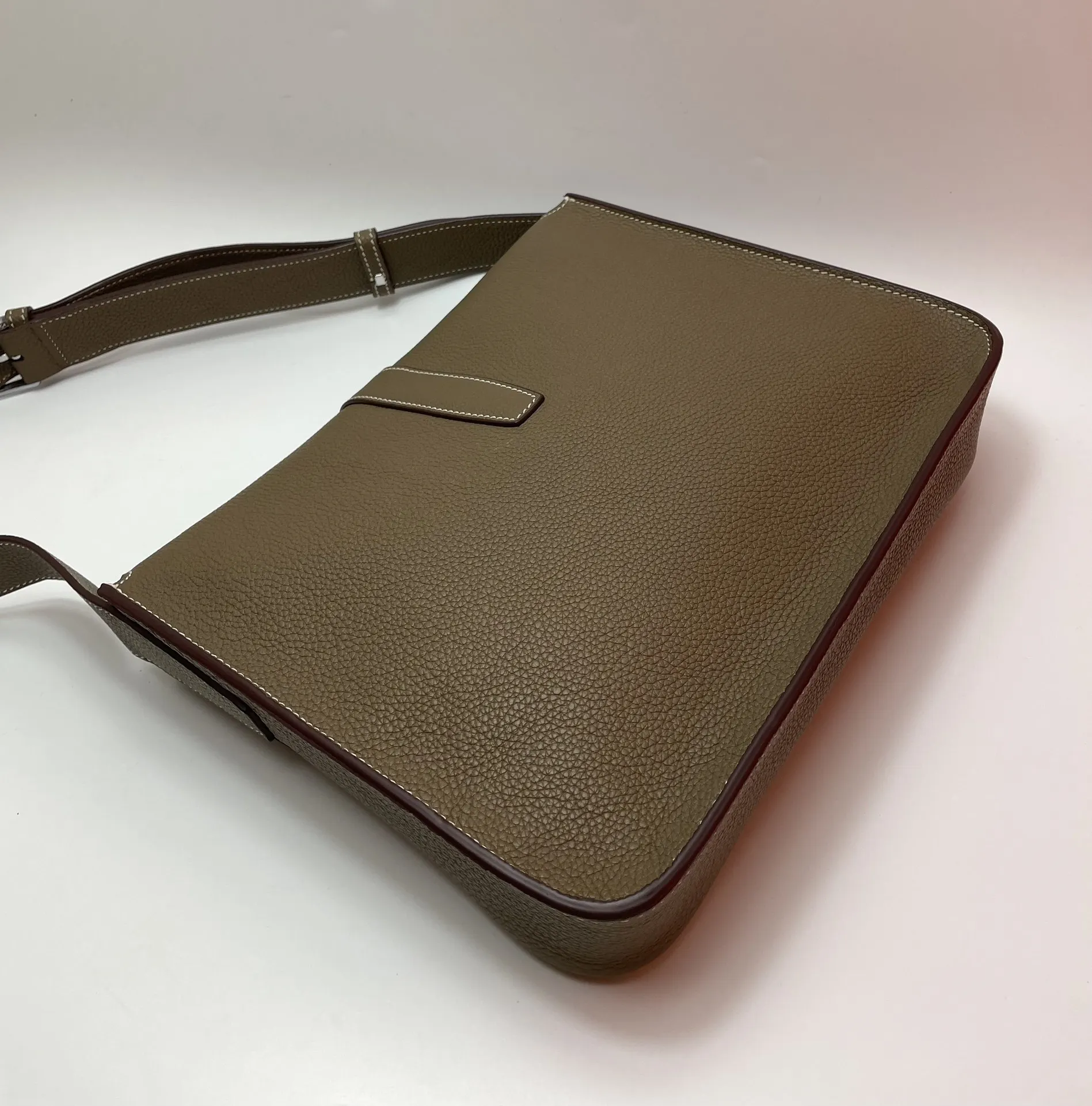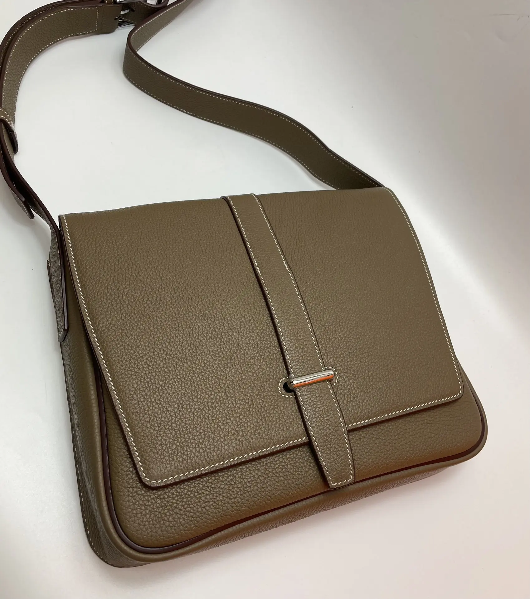 Semi-handmade New Men s Steve Light Junior Messenger Bag Crossbody 27cm Grade A Togo Leather Patchwork [Elephant Grey] Silver Hardware Unisex Style Synchronized Beeswax Thread Sewing Pure Steel Hardware Dimensions 27x23x5 Excellent Cowhide Leather Quality