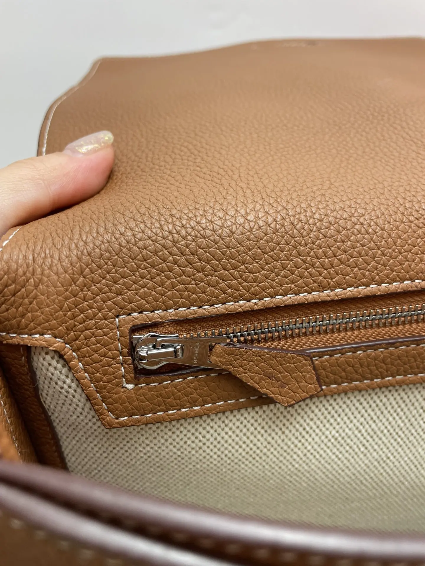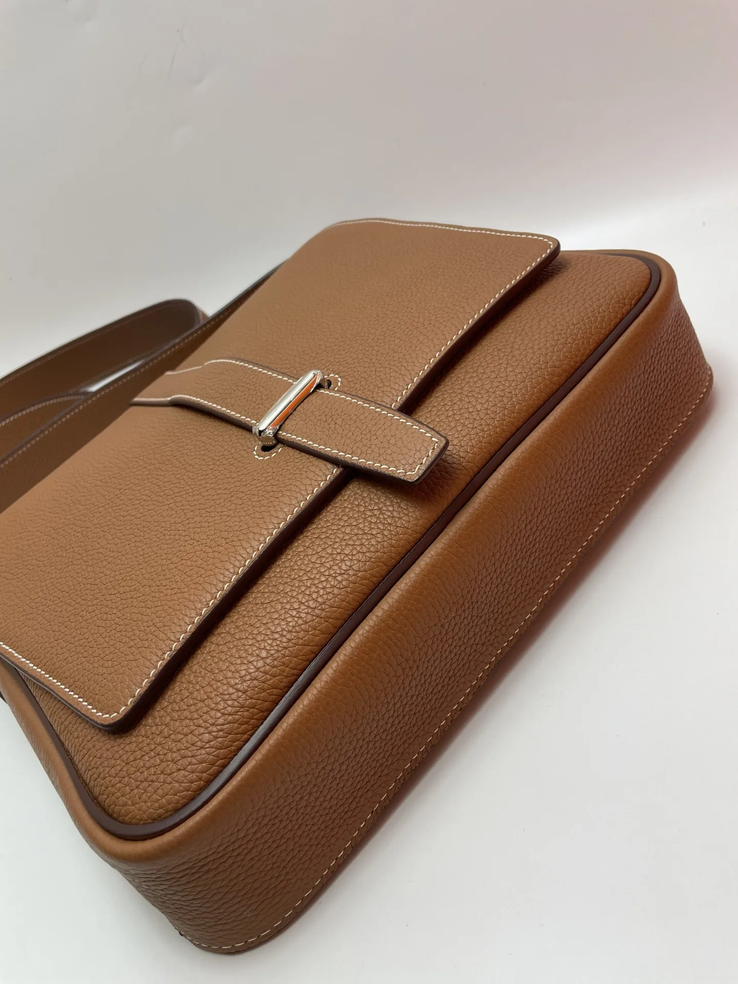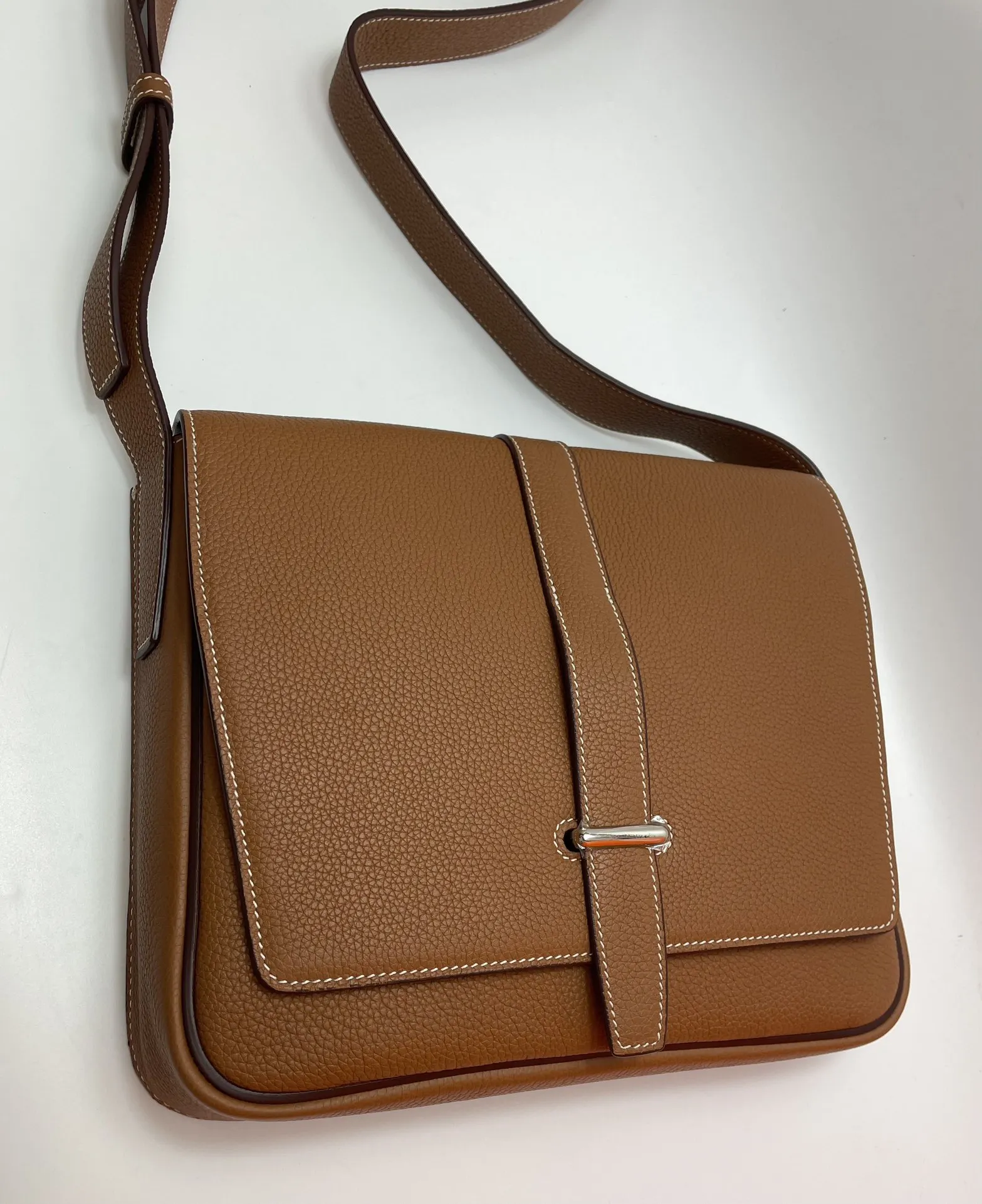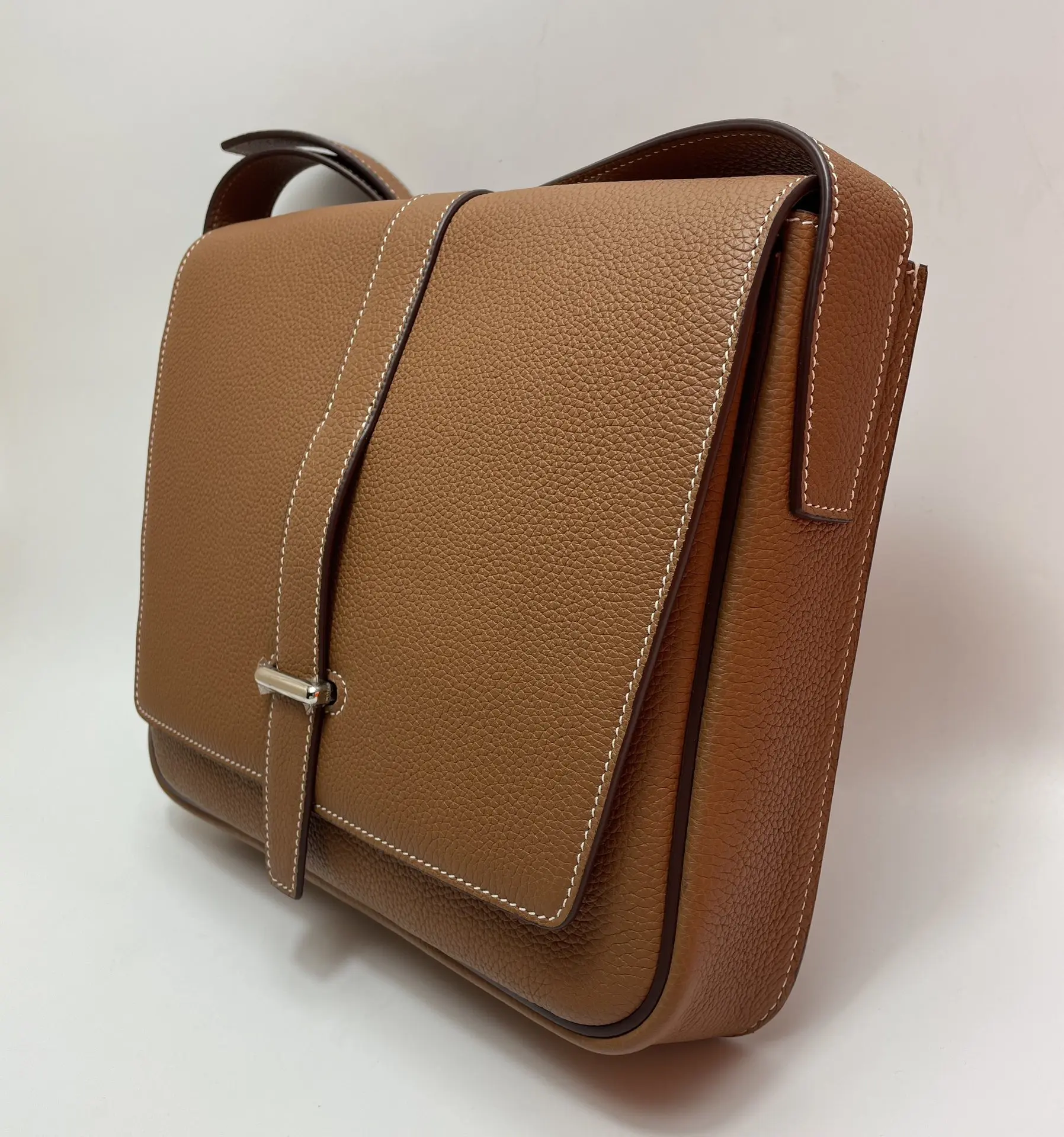 Semi-handmade New Men s Steve Light Junior Messenger Bag Crossbody 27cm A-Grade Togo Leather Patchwork [Gold Brown] Silver Hardware Unisex Style Synchronized Wax Thread Stitching Pure Steel Hardware Dimensions 27x23x5 Excellent Cowhide Leather Quality