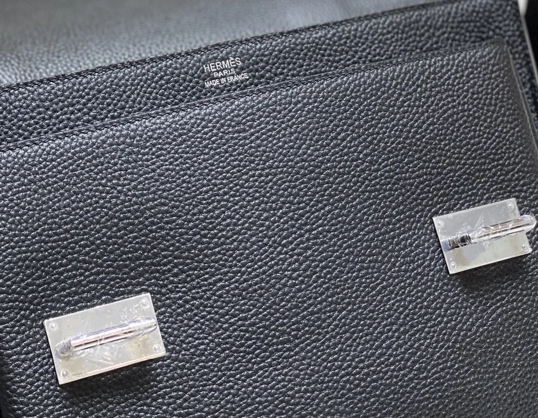 Semi-handmade Steven black and silver casual classic men s shoulder and crossbody bag (drawstring buckle) A-grade Togo calfskin wax thread stitching real shot 30cm