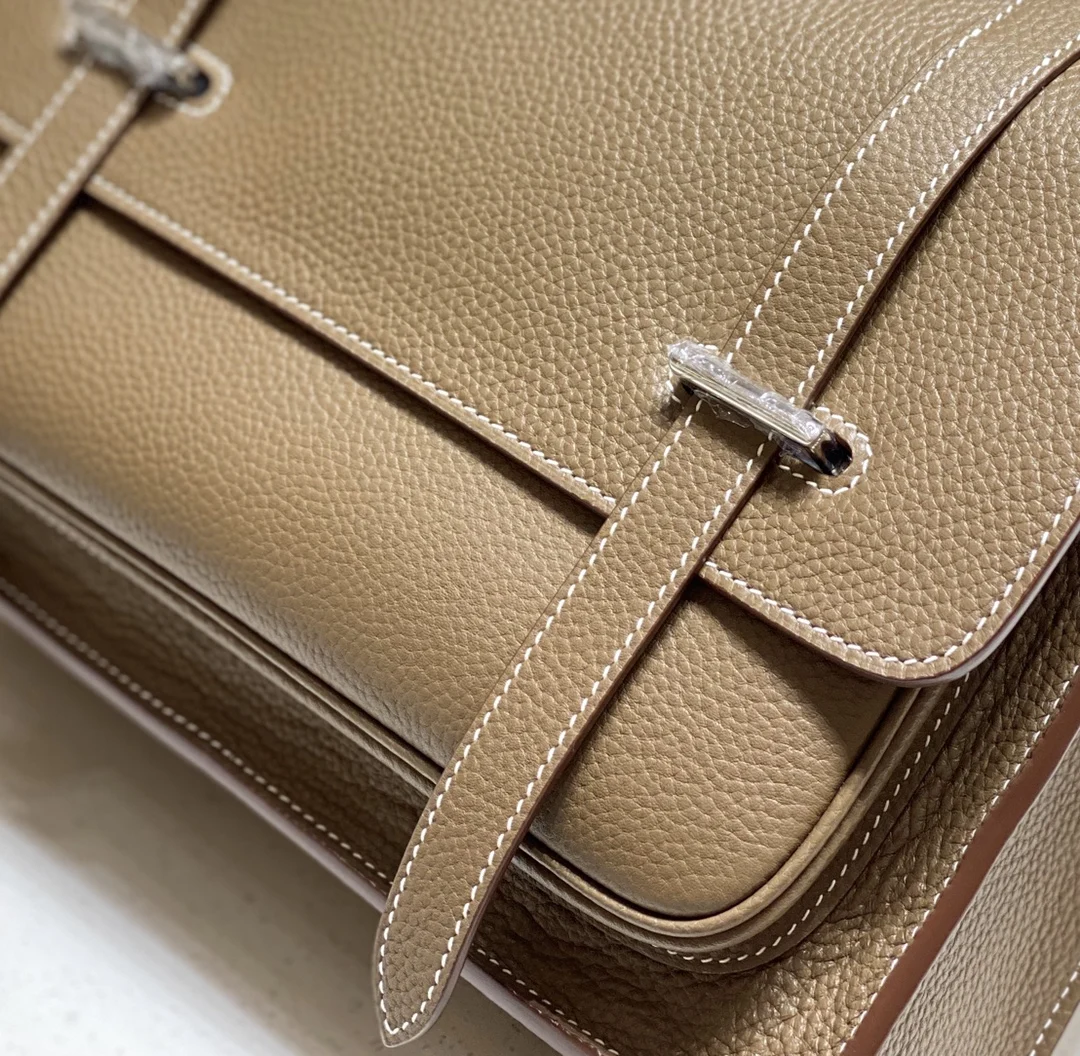 Semi-handmade Steven elephant grey Steve casual classic men s shoulder and crossbody bag (drawstring buckle) A-grade Togo calfskin wax thread stitching real shot 30cm