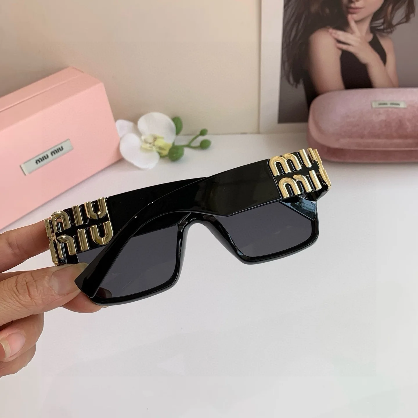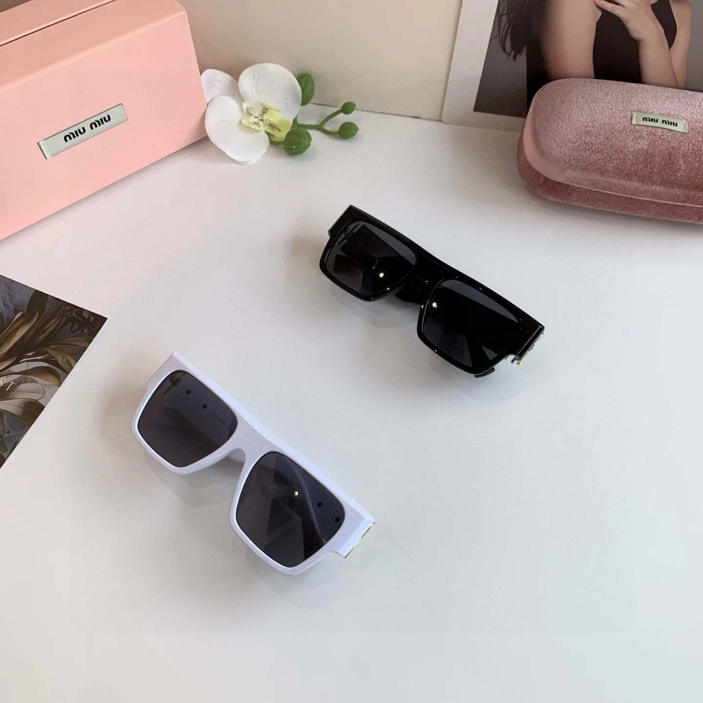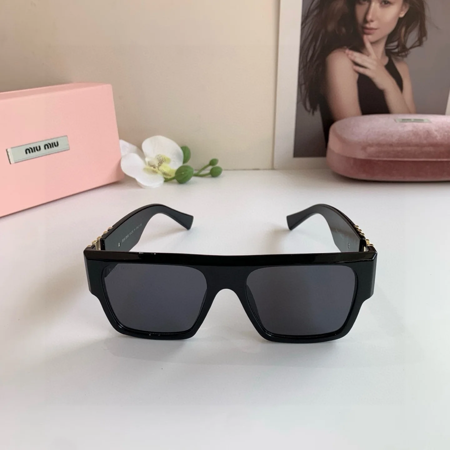 MIUMIU new sunglasses for men and women, high-end sun protection square frame, European and American fashion glasses, greatly slimming Korean style sunglasses