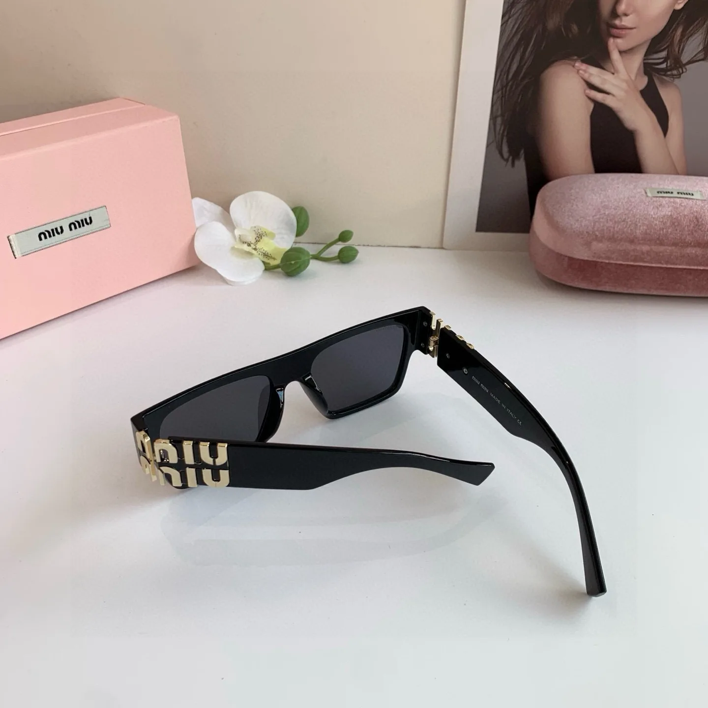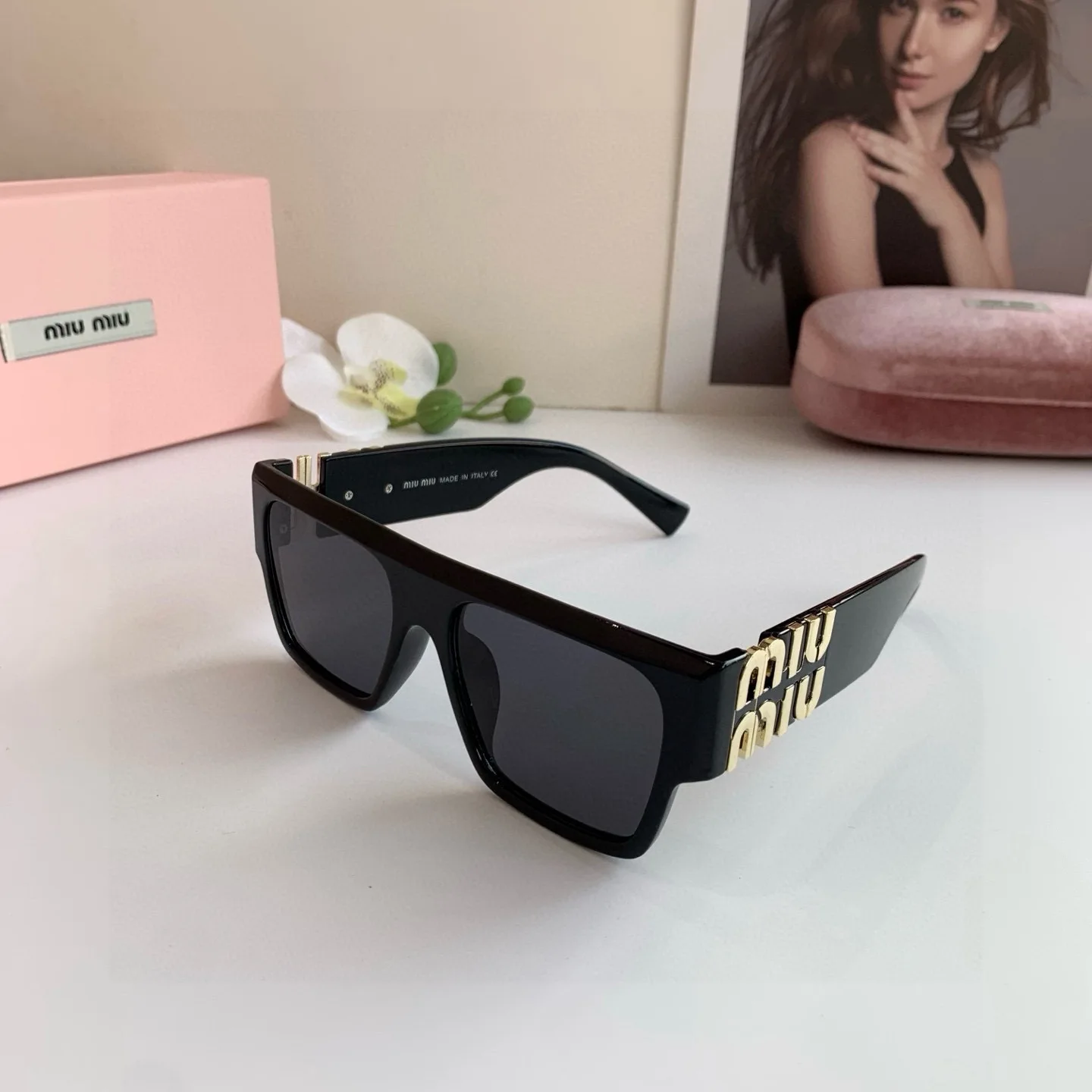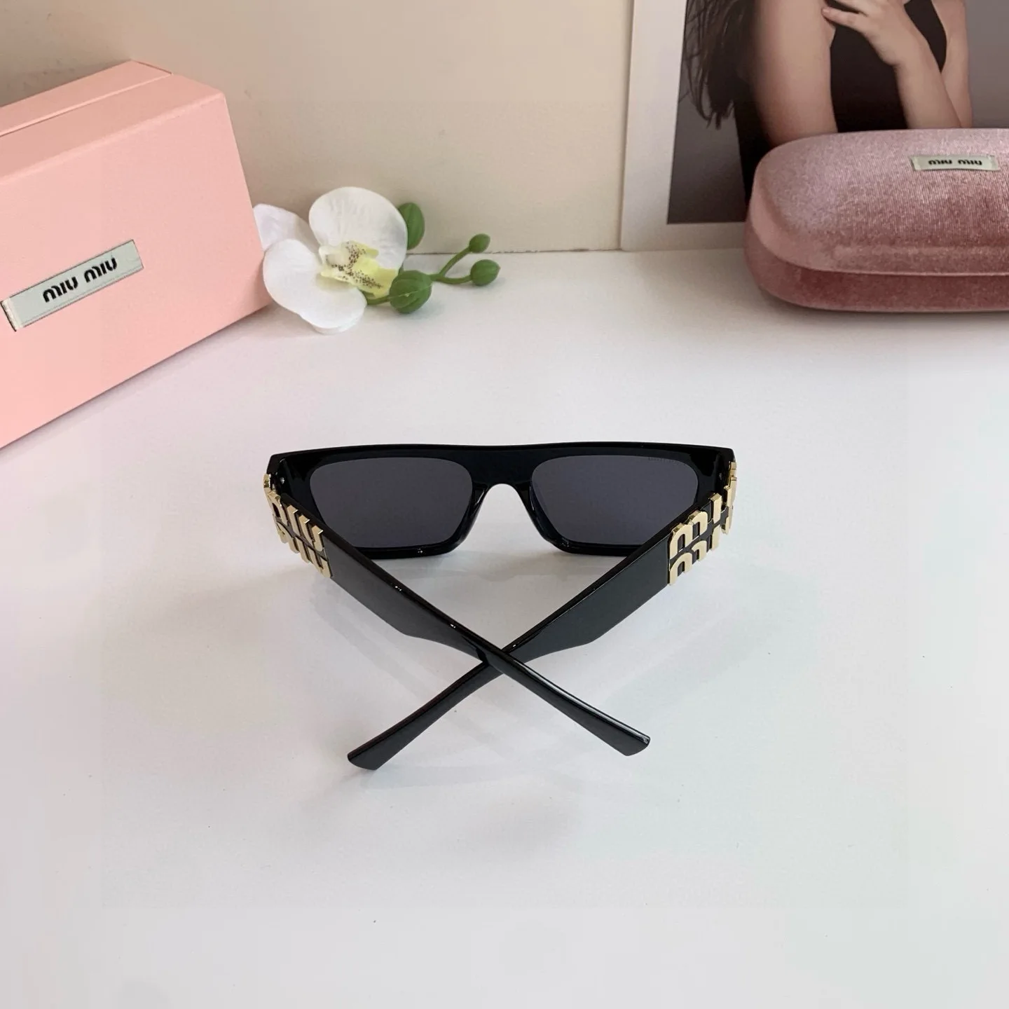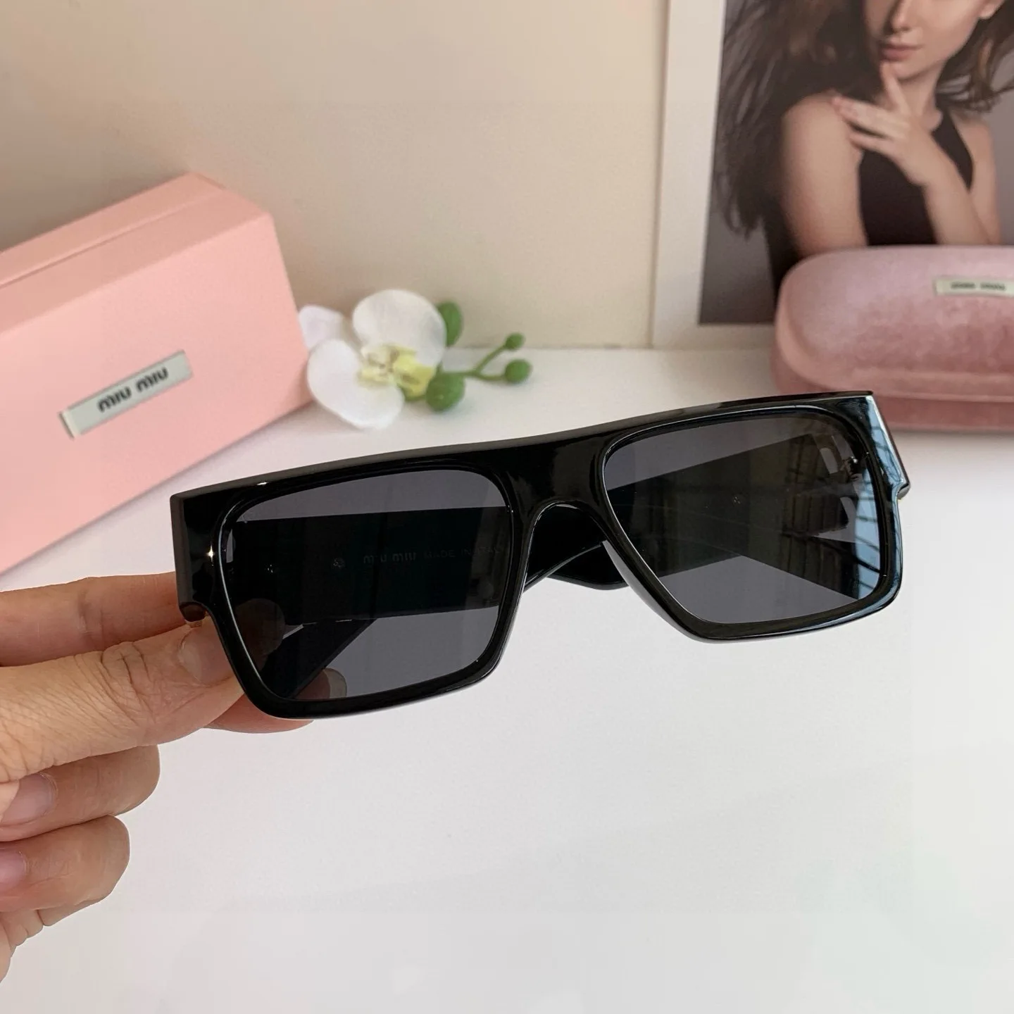 MIUMIU new sunglasses for men and women, high-end sun protection square frame, European and American fashion glasses, greatly slimming Korean style sunglasses