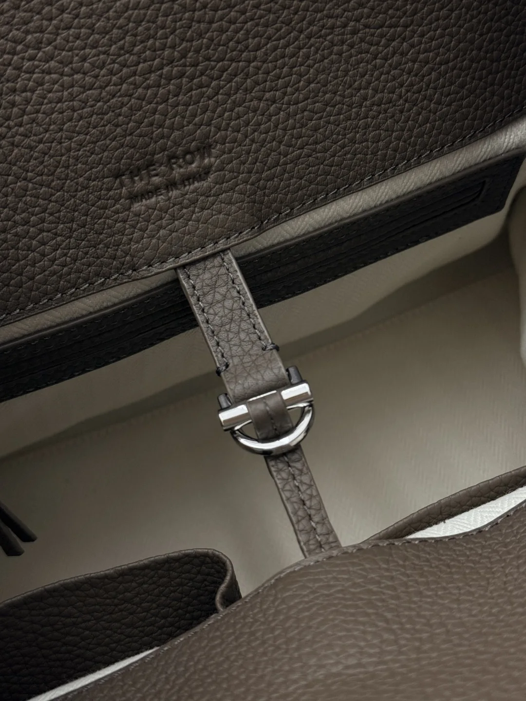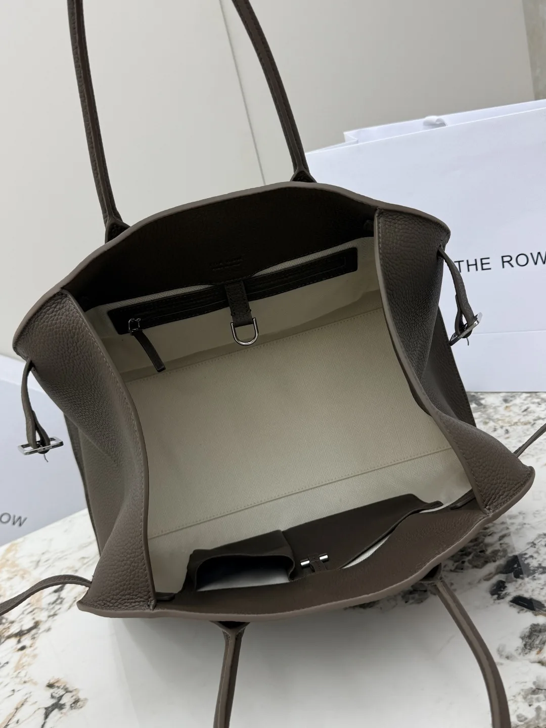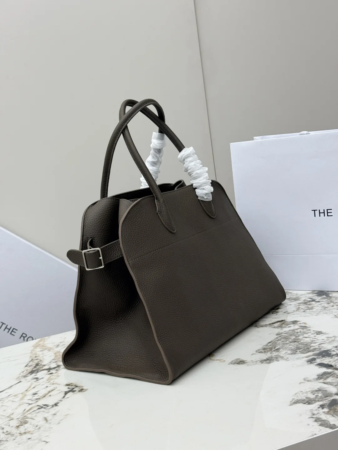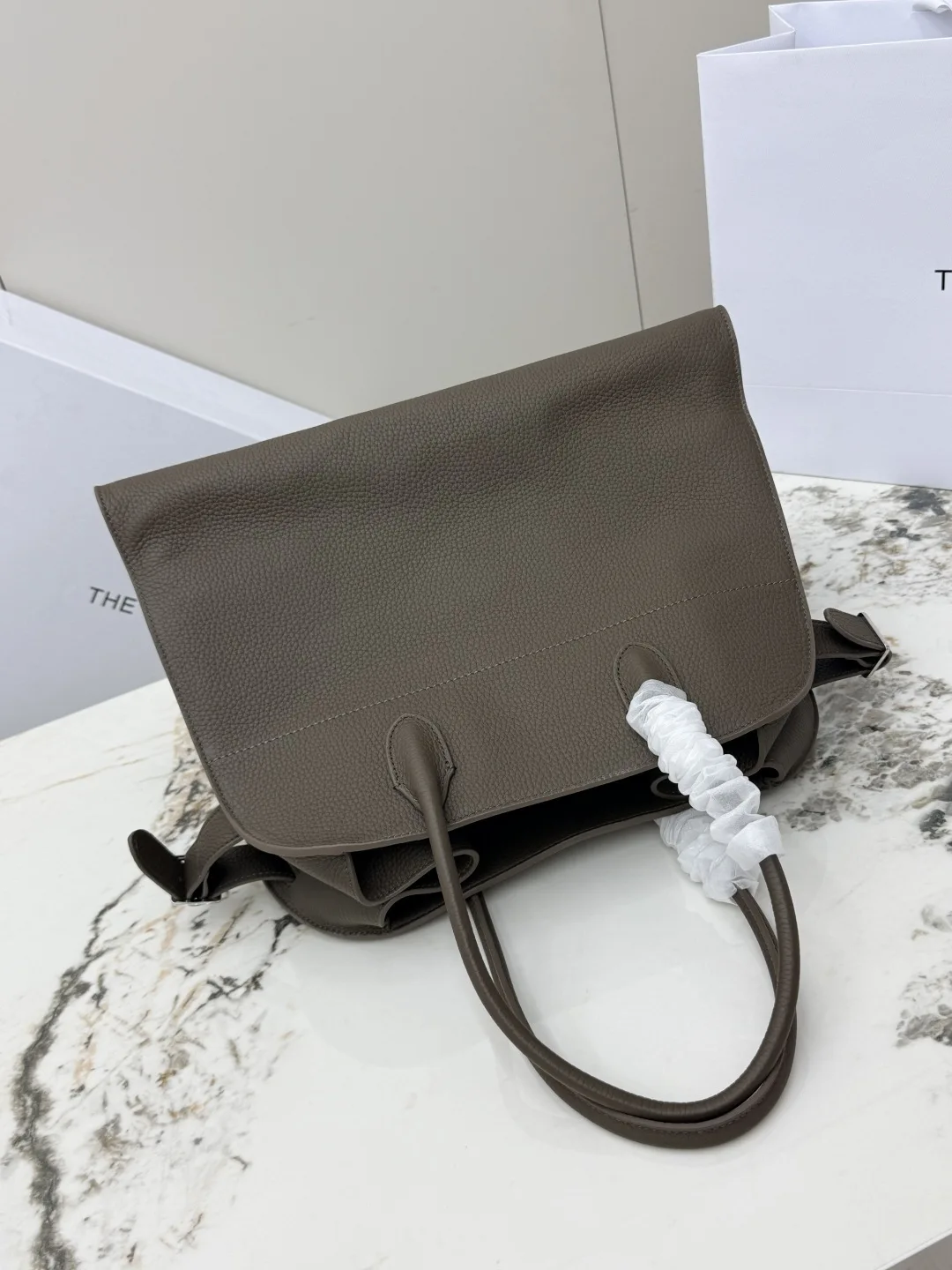 Lychee grain (Large 38CM) The Row boutique hot-selling classic tote bag Soft Margaux 15-inch series, lychee grain calfskin, ultra-large capacity lightweight handbag, simple yet understated, featuring all-steel silver hardware. The bag is made of imported lychee grain cowhide, with a soft and excellent touch, gathered strap accordion-style sides, interior slide buckle closure, one zip pocket, two slip pockets, model: T1255. Dimensions: Length 38cm x Width 23cm x Height 28cm!