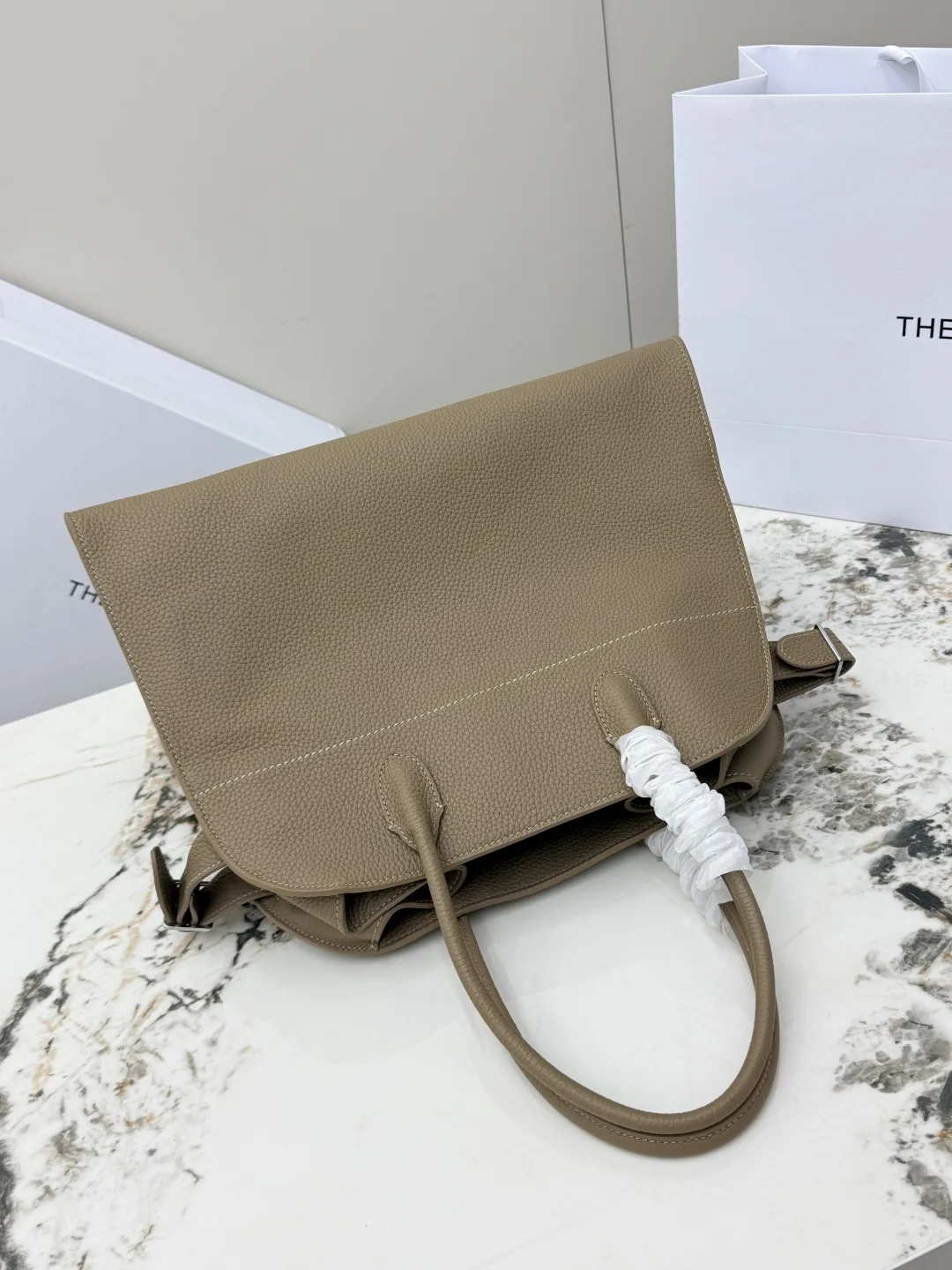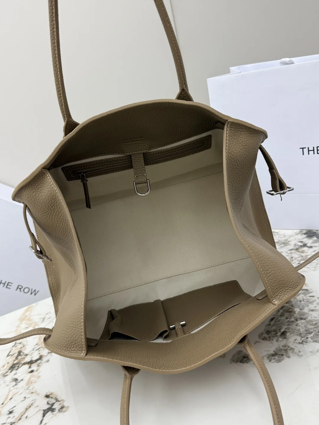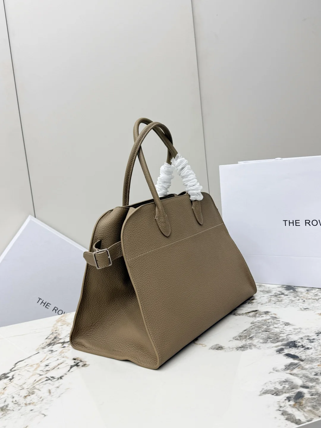 Lychee grain (large size 38CM) The Row boutique hot-selling classic tote bag Soft Margaux 15-inch series, lychee grain calfskin, ultra-large capacity lightweight handbag, simple yet understated, featuring all-steel silver hardware. The bag is made of imported lychee grain leather, with a soft and excellent touch, gathered strap accordion-style sides, interior with a slide buckle closure, one zip pocket, and two slip pockets. Model: T1255. Dimensions: Length 38cm x Width 23cm x Height 28cm!