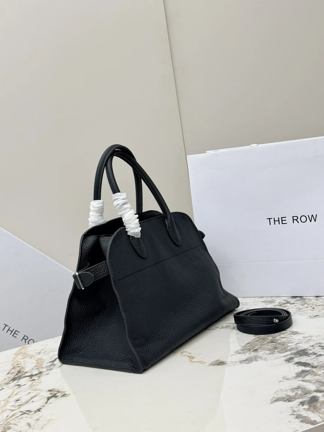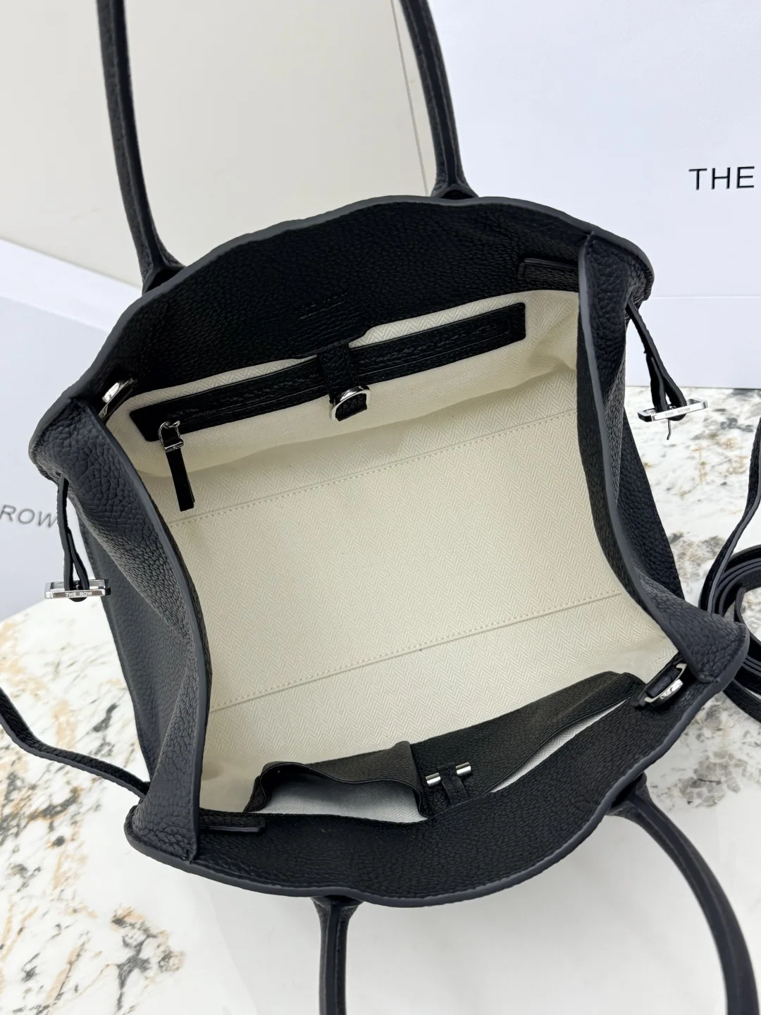Lychee grain (small size 32CM) The Row boutique hot-selling classic tote bag Soft Margaux 12-inch series, made of lychee grain calfskin, ultra-large capacity lightweight handbag, simple yet understated, featuring all-steel silver hardware. The bag is made of imported lychee grain leather, with a soft and excellent touch, gathered strap with accordion-style sides, interior slide buckle closure, one zip pocket, two slip pockets, and comes with a shoulder strap for crossbody wear. Model: T1586. Dimensions: Length 32cm x Width 19cm x Height 23cm!