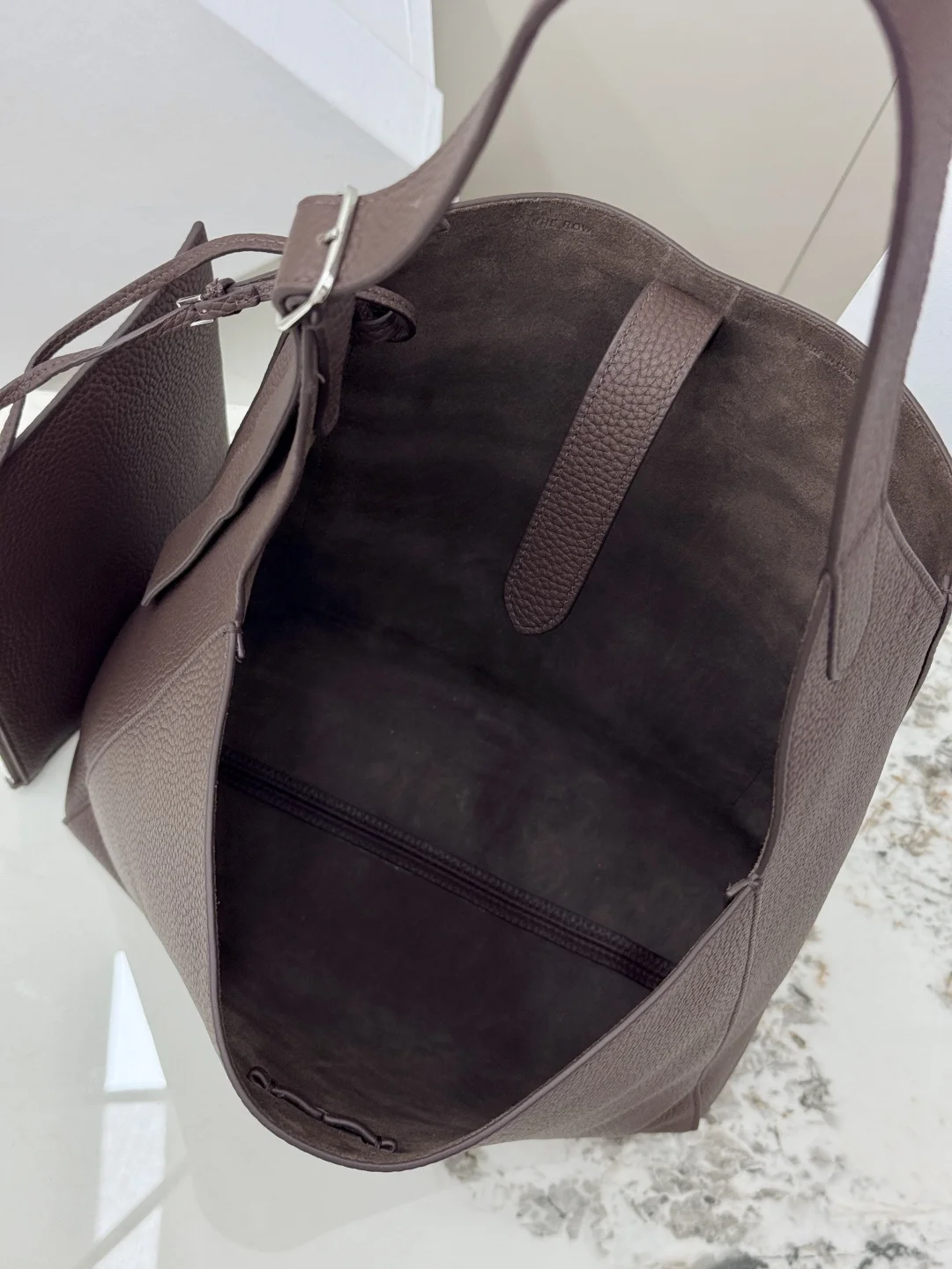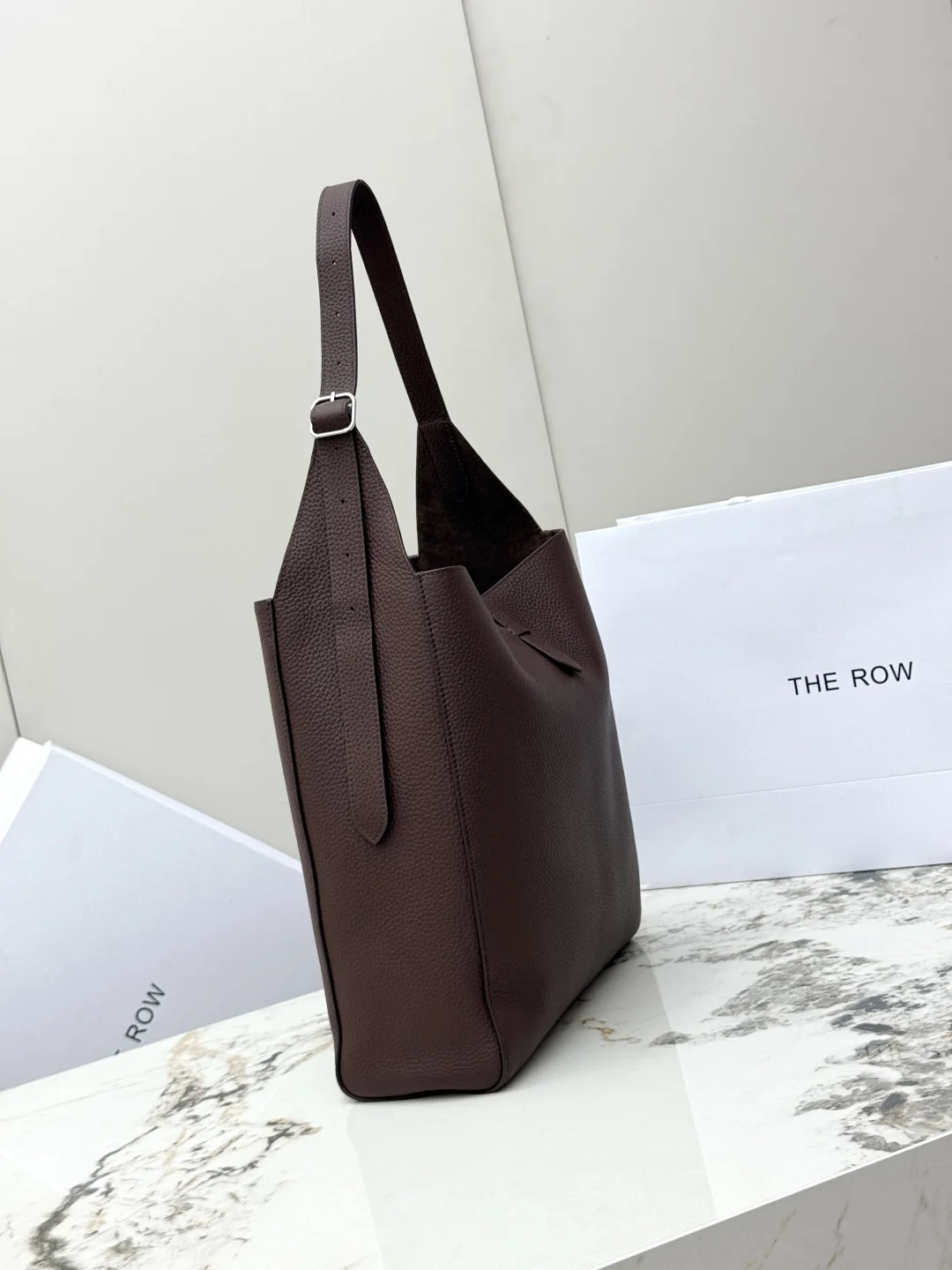 THE ROW original leather lychee grain tote bag Blake Hobo handbag, also comes with a small bag, adjustable shoulder strap length. The quality of the leather from the ROW brand has never disappointed; you can tell it s a good product as soon as you pick it up and use it. The leather is truly excellent, made of imported lychee grain cowhide, with a suede interior, soft and plush like the Park bucket bag, super nice to touch! The silhouette is relaxed and lazy, so there s no need to worry about height issues. The large capacity makes it perfect as a work commuting bag. Model: T1699. Size: Length 32cm x Height 31cm x Width 11cm.