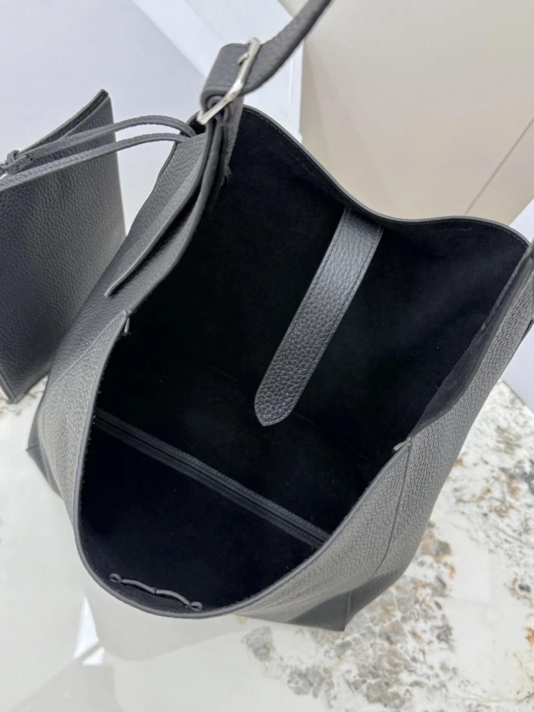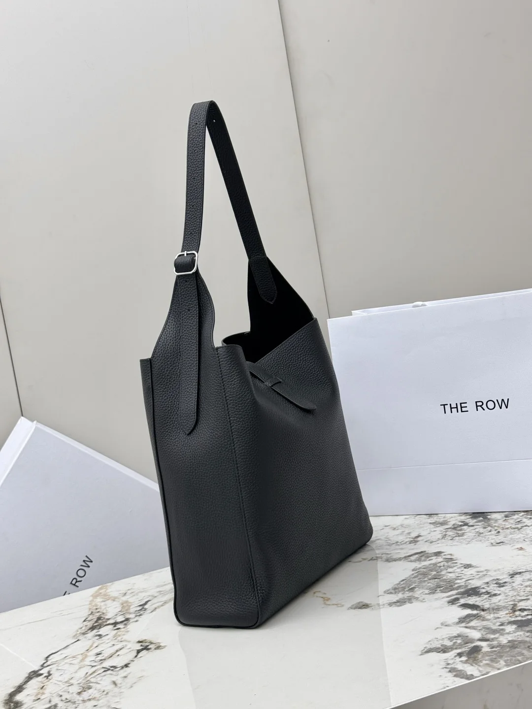 THE ROW original leather lychee grain tote bag Blake Hobo handbag, also comes with a small bag, adjustable shoulder strap length. The quality of the leather from the ROW brand has never disappointed; you can tell it s a good product as soon as you pick it up and use it. The leather is truly excellent, made of imported lychee grain cowhide, with a suede interior, soft and plush like the Park bucket bag, super nice to touch! The silhouette is relaxed and lazy, so there s no need to worry about height issues. The large capacity makes it perfect for work commutes. Model: T1699. Size: Length 32cm x Height 31cm x Width 11cm.