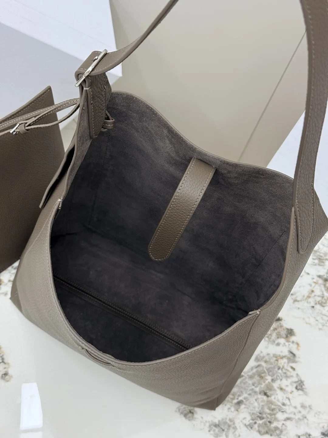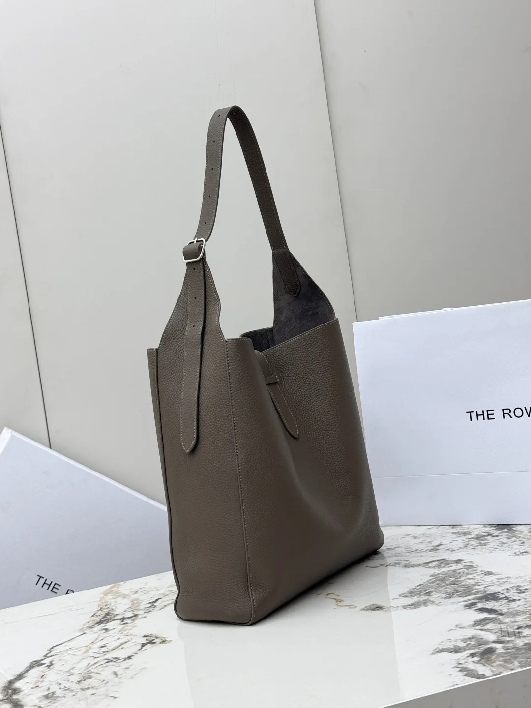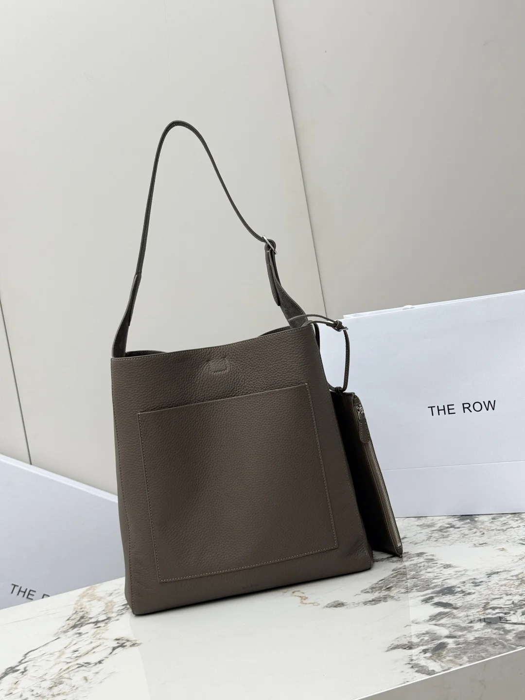 THE ROW original leather lychee grain tote bag Blake Hobo handbag, also comes with a small bag, adjustable shoulder strap length. The quality of the leather from the ROW brand has never disappointed; you can tell it s a good product as soon as you pick it up and use it. The leather is truly excellent, made of imported lychee grain cowhide, with a suede interior, soft and plush like the park bucket bag, super nice to touch! The silhouette is relaxed and lazy, so there s no need to worry about height issues. The large capacity makes it perfect as a work commuting bag. Model: T1699. Size: Length 32cm x Height 31cm x Width 11cm.
