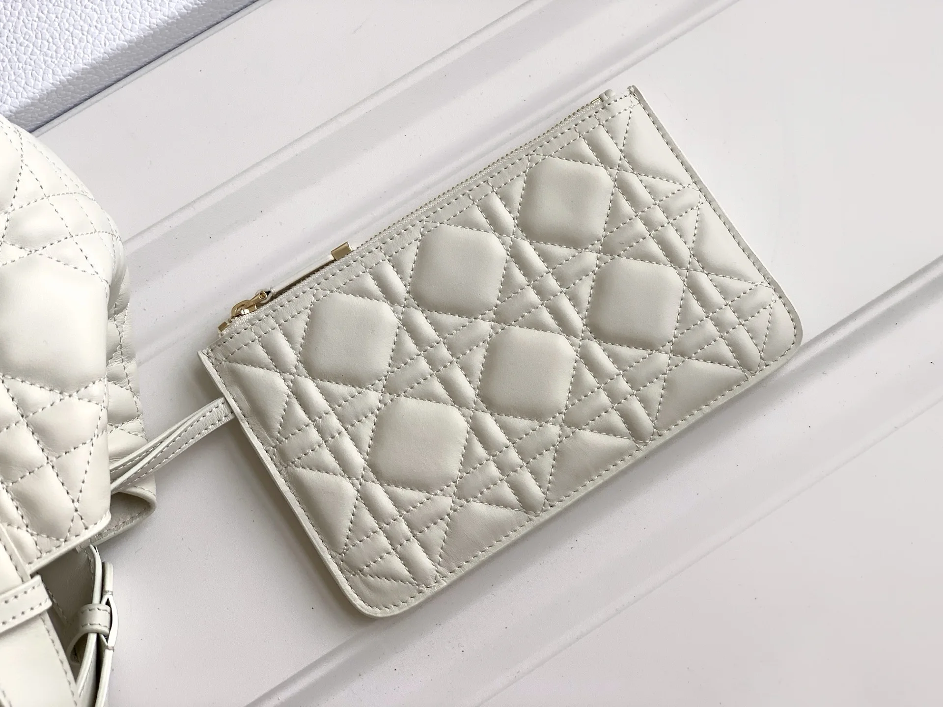 Unveiled at the Spring-Summer 2023 show, the Dior Toujours bag stands out with its casual and practical design. Crafted in white calfskin with oversized Cannage stitching, the spac..