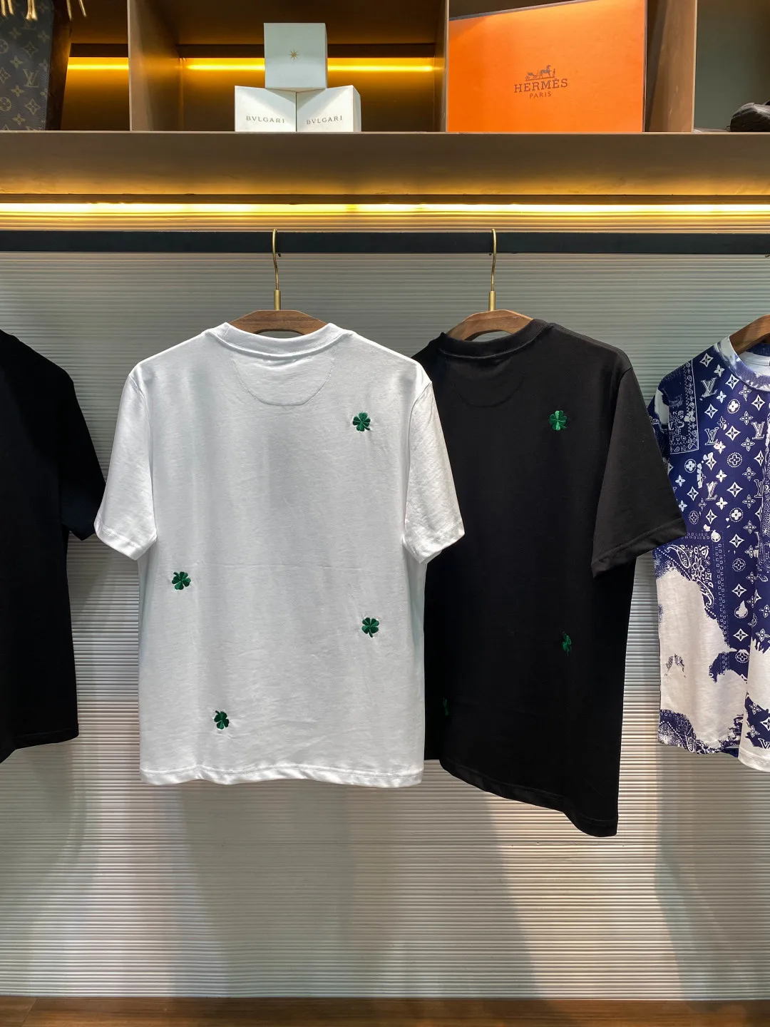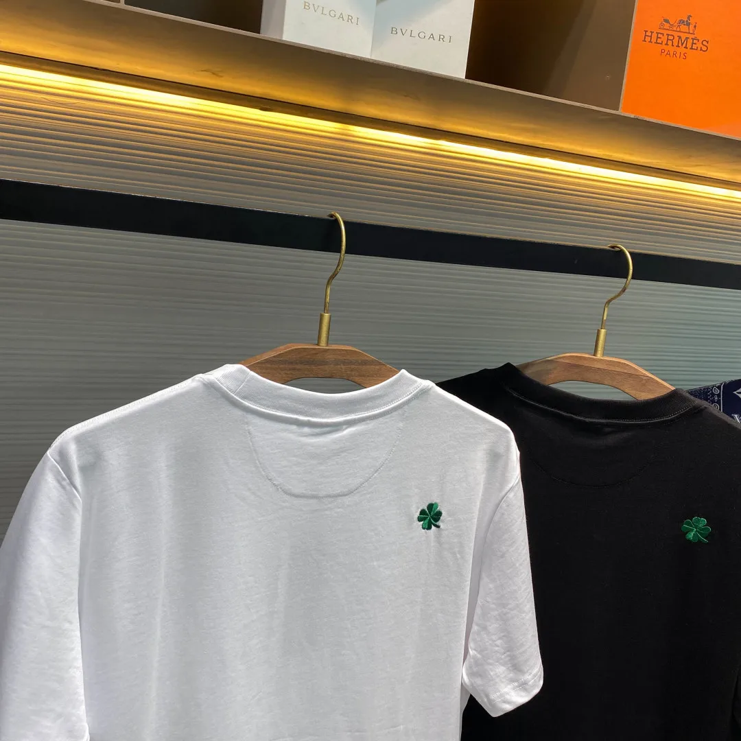-CD26SS Spring/Summer new plain knit cotton basic round neck short tee, unisex full-width green four-leaf clover pattern embroidered casual short-sleeve T-shirt! For males, thos..