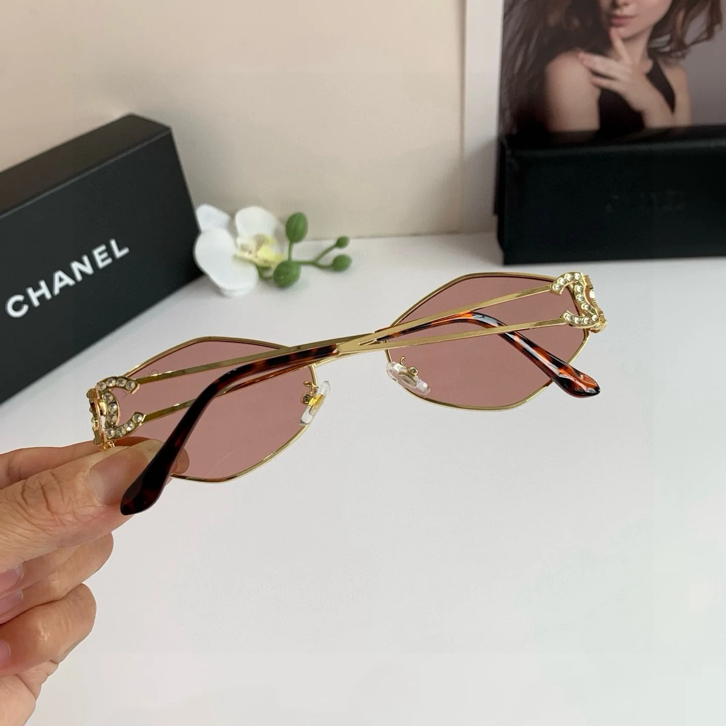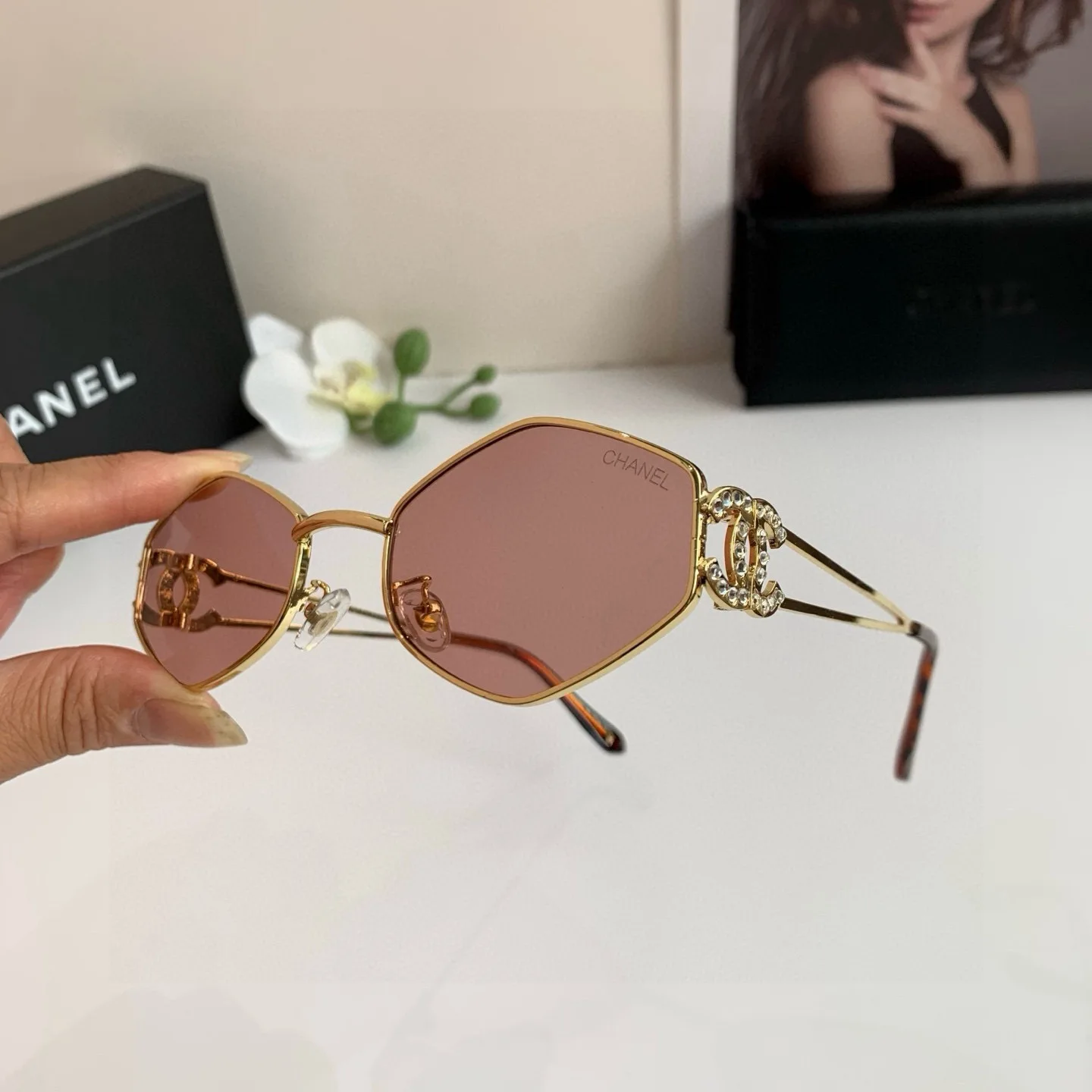 CHANEL Metal Logo with Diamonds European and American Fashion Diamond-Shaped High-End UV Protection Sunglasses for Travel and Driving!