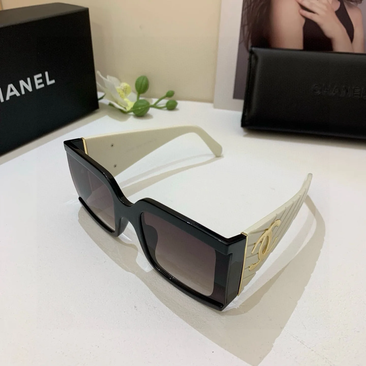 CHANEL Metal Logo Large Arm Sunglasses for Men and Women, High-End Fashion UV Protection Sunglasses, Ideal for Outings and Driving!
