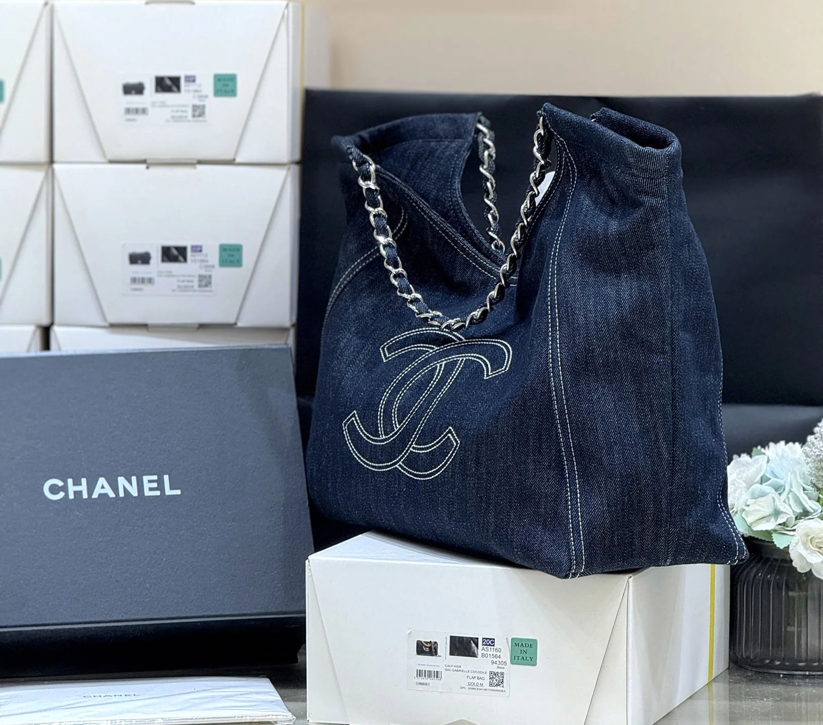 Vintega denim tote bag is the ultimate classic. It s long been out of stock in boutiques and is now a rare find in vintage stores! The actual product is truly durable, practical, and very versatile! It also has a super large capacity. Highly recommended [smiley face][smiley face] Leather: Sourced from European original factories, authentic denim is scarce and often out of stock. Recommended denim tote bag (35*48*14cm).