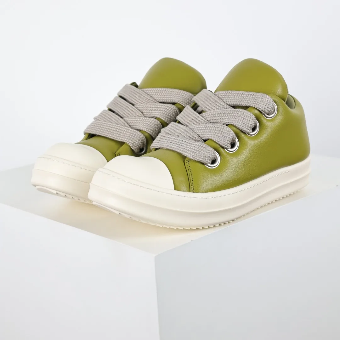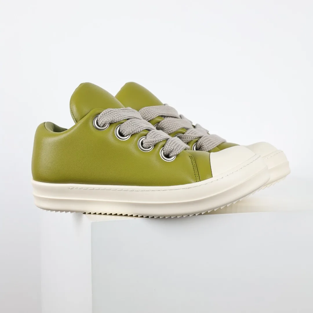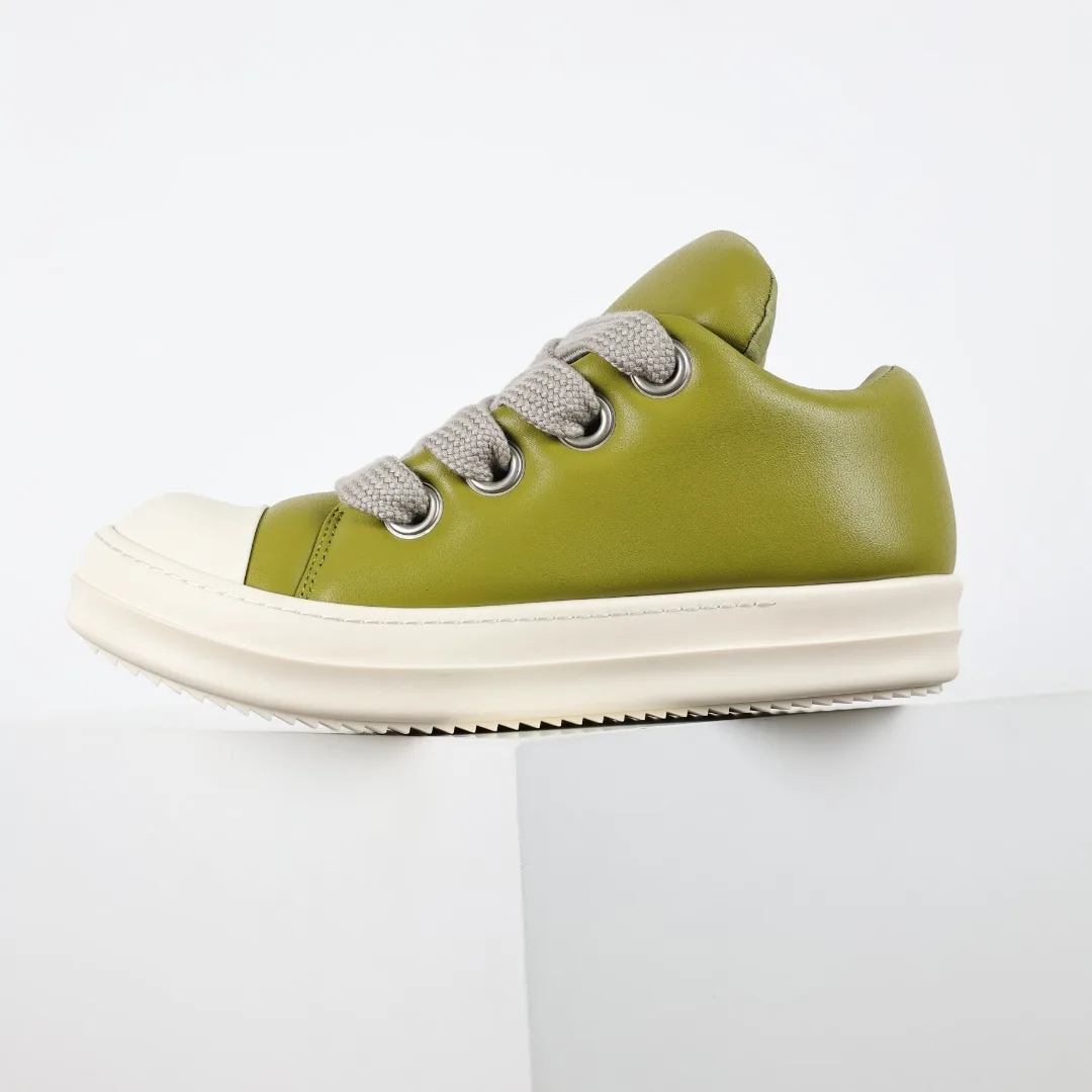 Rick Owens Watermelon head light green leather upper thick shoelace loafer shoes