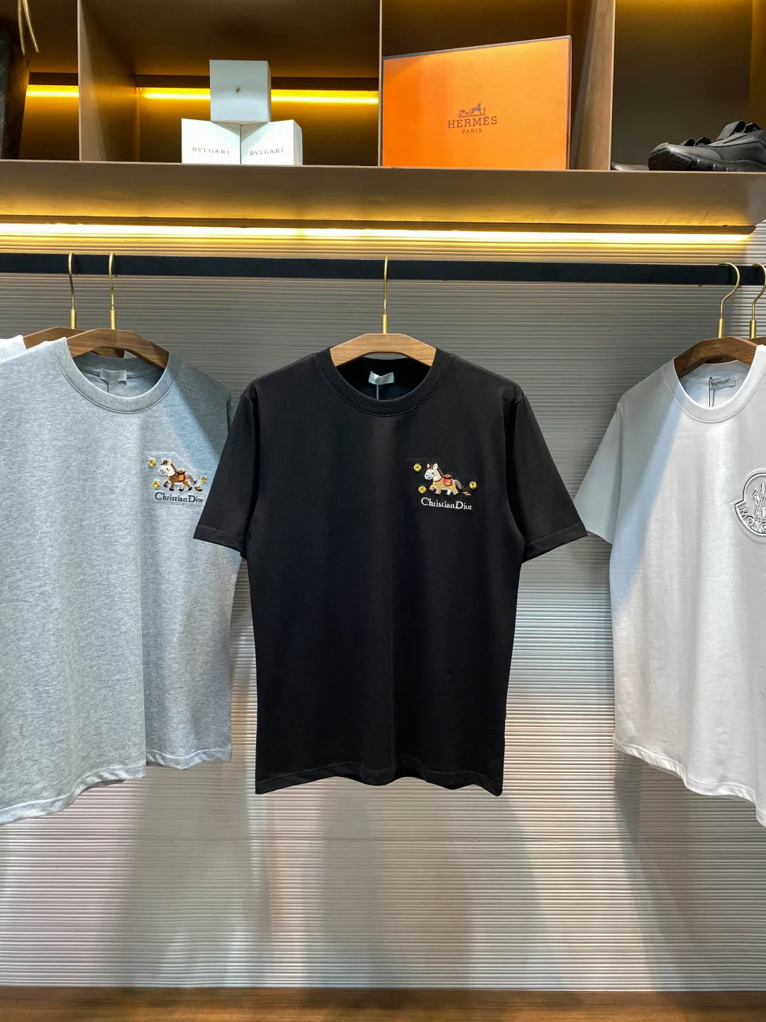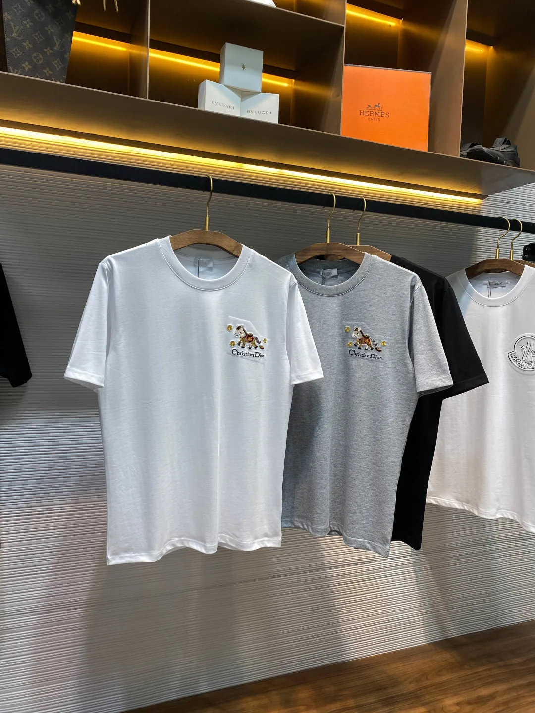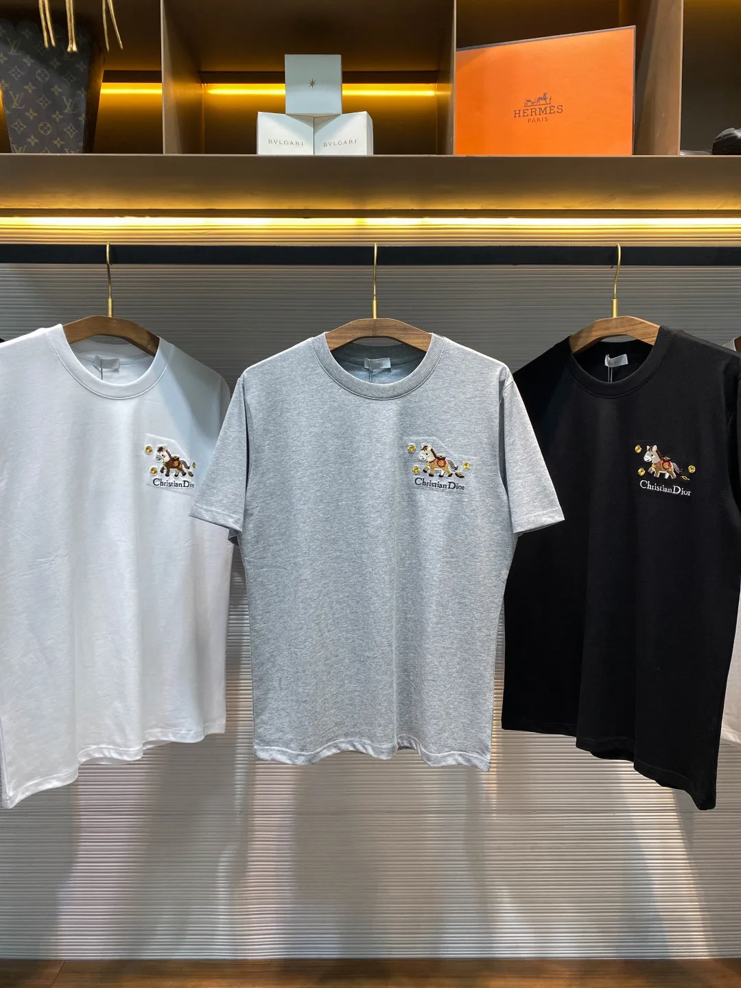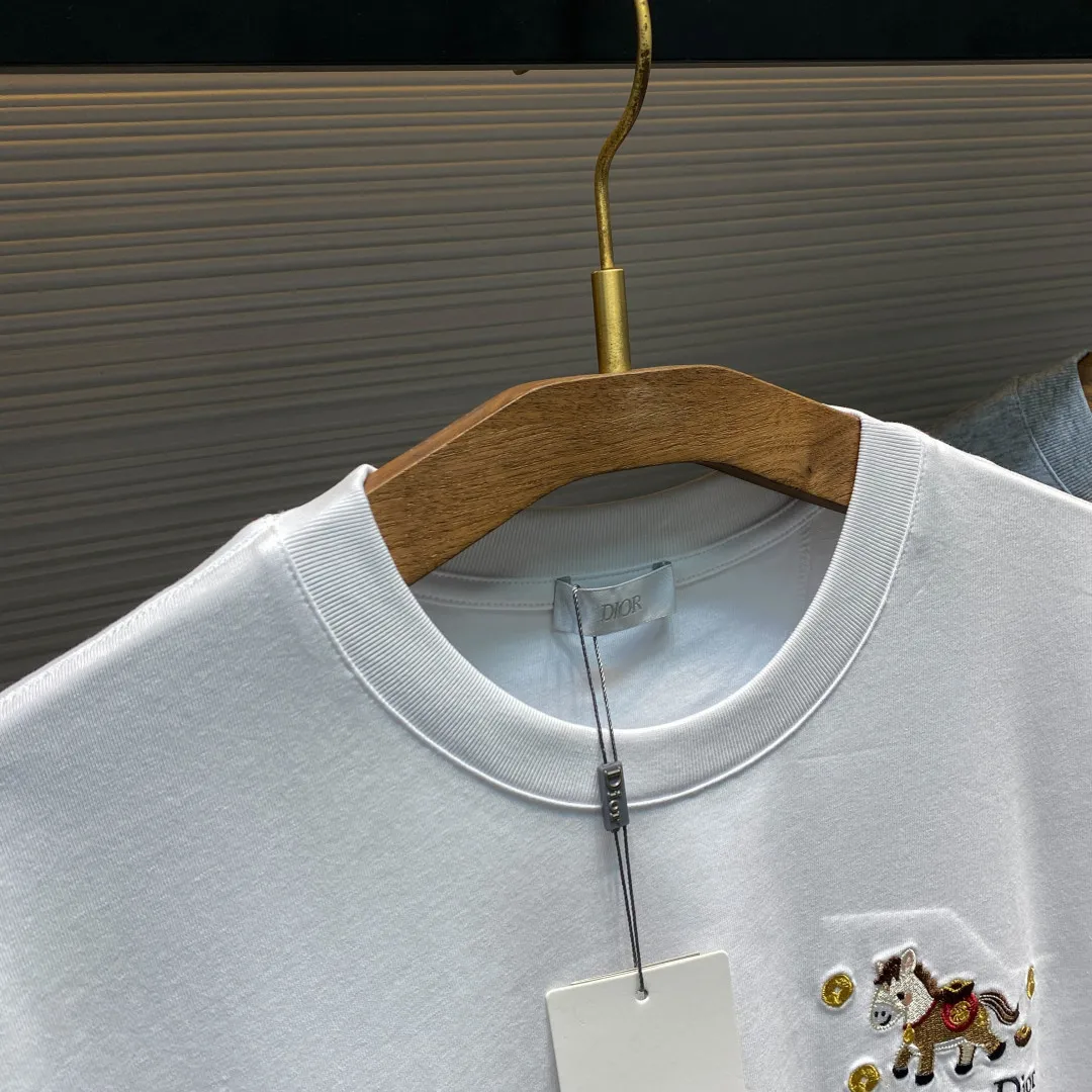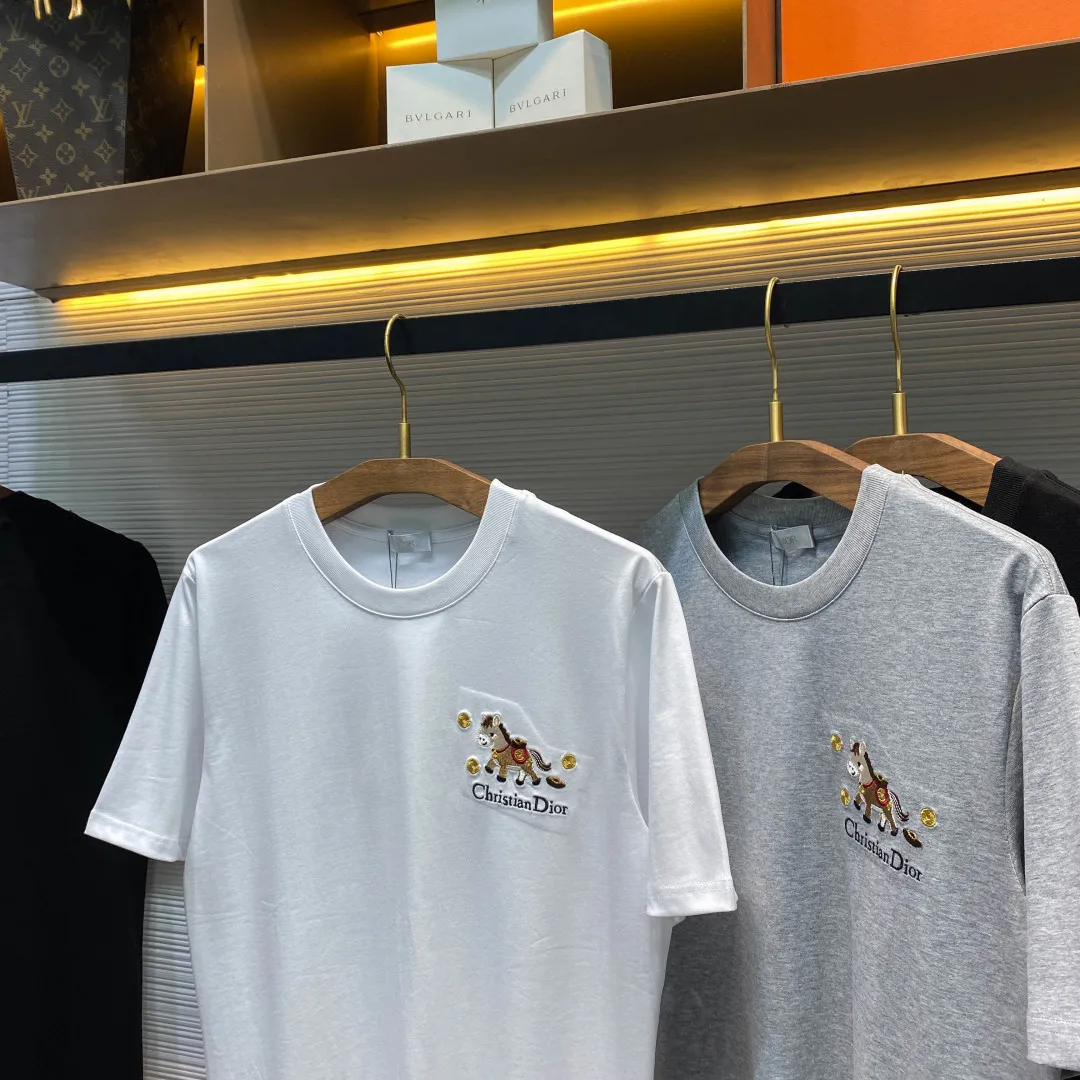 CD26SS Spring/Summer New Plain Knit Cotton Basic Round Neck Short Tee, unisex fashion Year of the Horse limited logo pattern embroidered casual short-sleeve T-shirt! For men, t..