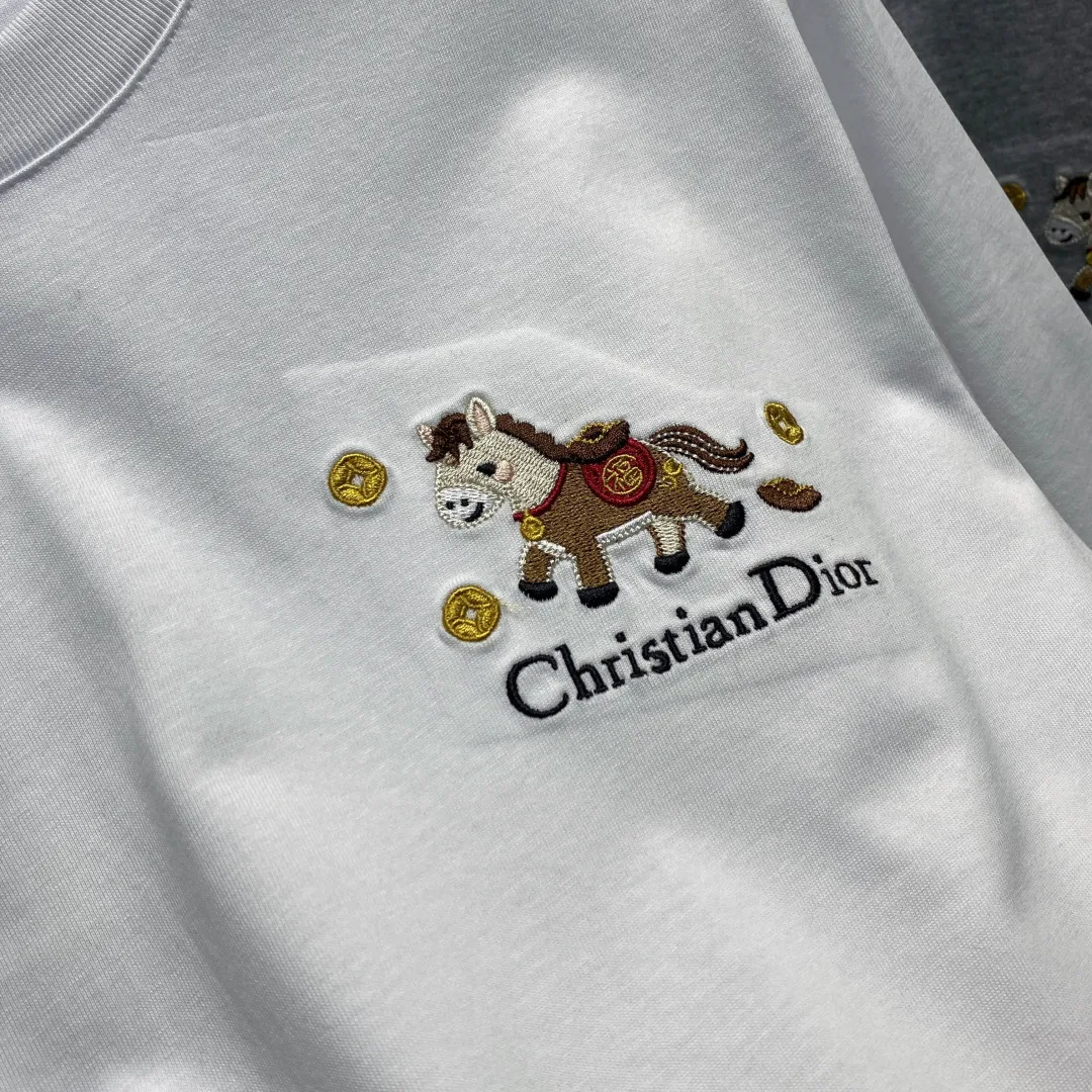 Dior Women s Fashion Year of the Horse Limited Edition Logo Pattern Embroidered Casual Short Sleeve T-Shirt