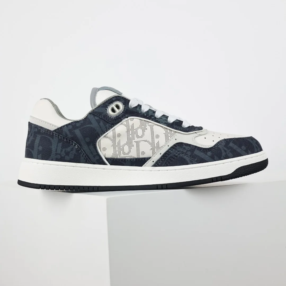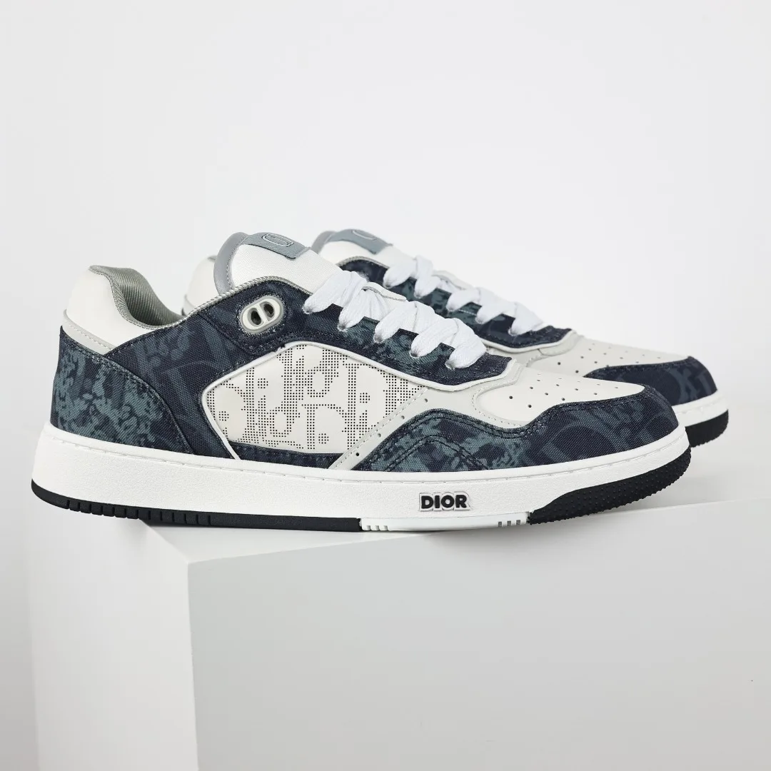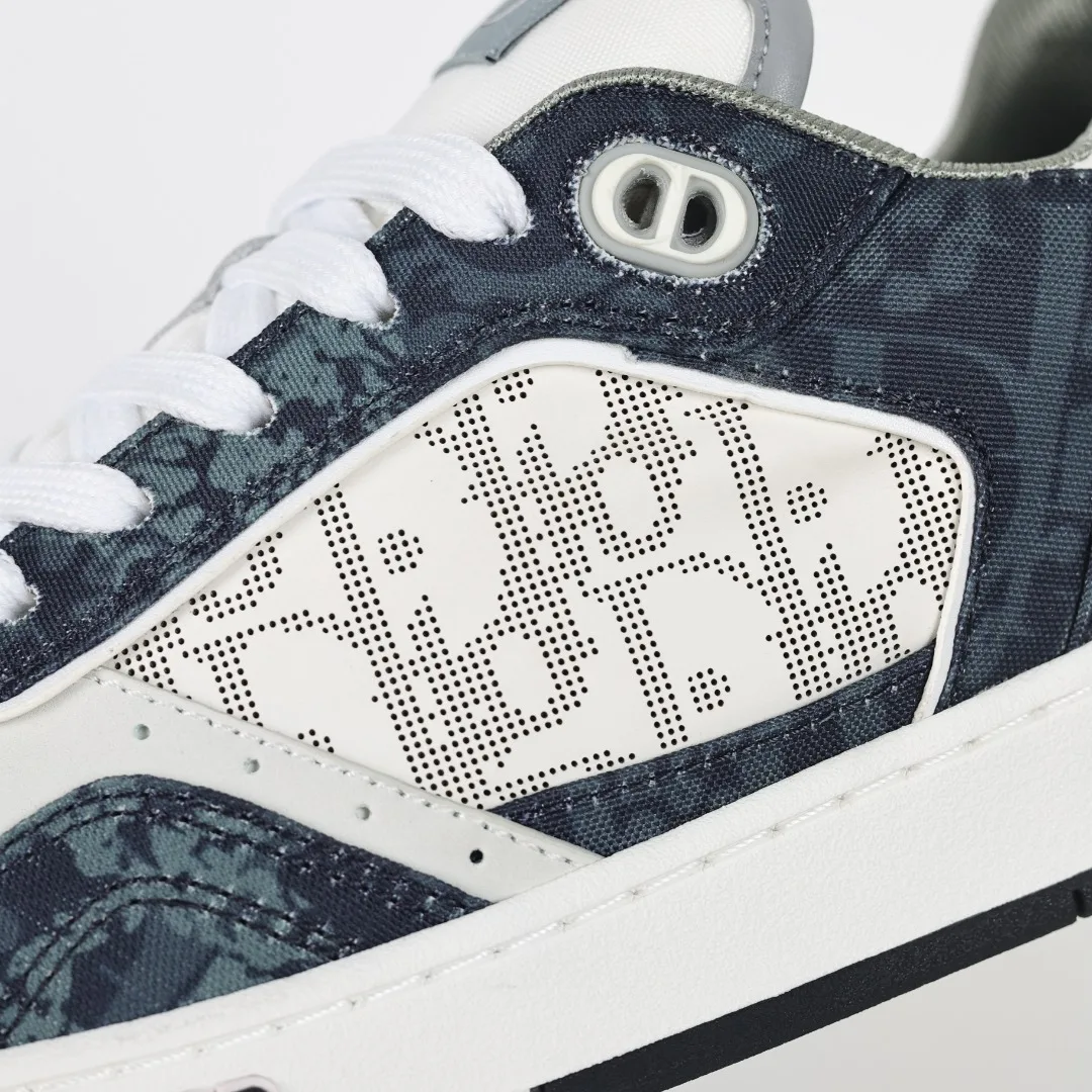 This B27 sneaker is a classic item from DIOR, meticulously crafted from smooth cowhide leather, featuring beige and black jacquard Oblique print trim (laser perforation) on the sides, complemented by CD icon eyelets, a two-tone rubber sole, and iconic details on the tongue and heel, making it more refined and stylish, suitable for various outfits. Available in blue, cream white, and DIOR gray smooth cowhide leather, with beige and black jacquard fabric oblique print, DIOR logo on the sole and eyelets, lace-up closure with CD icon eyelets, mesh fabric lining, two-tone rubber outsole, side seam stitching structure, includes dust bag and a pair of shoelaces, complete with authentic Italian packaging.