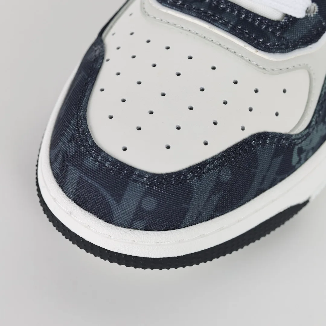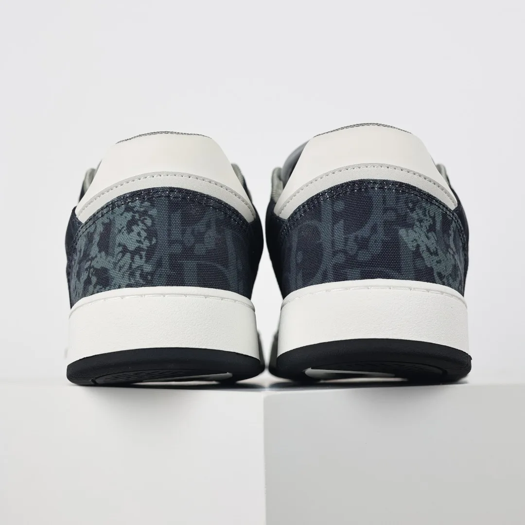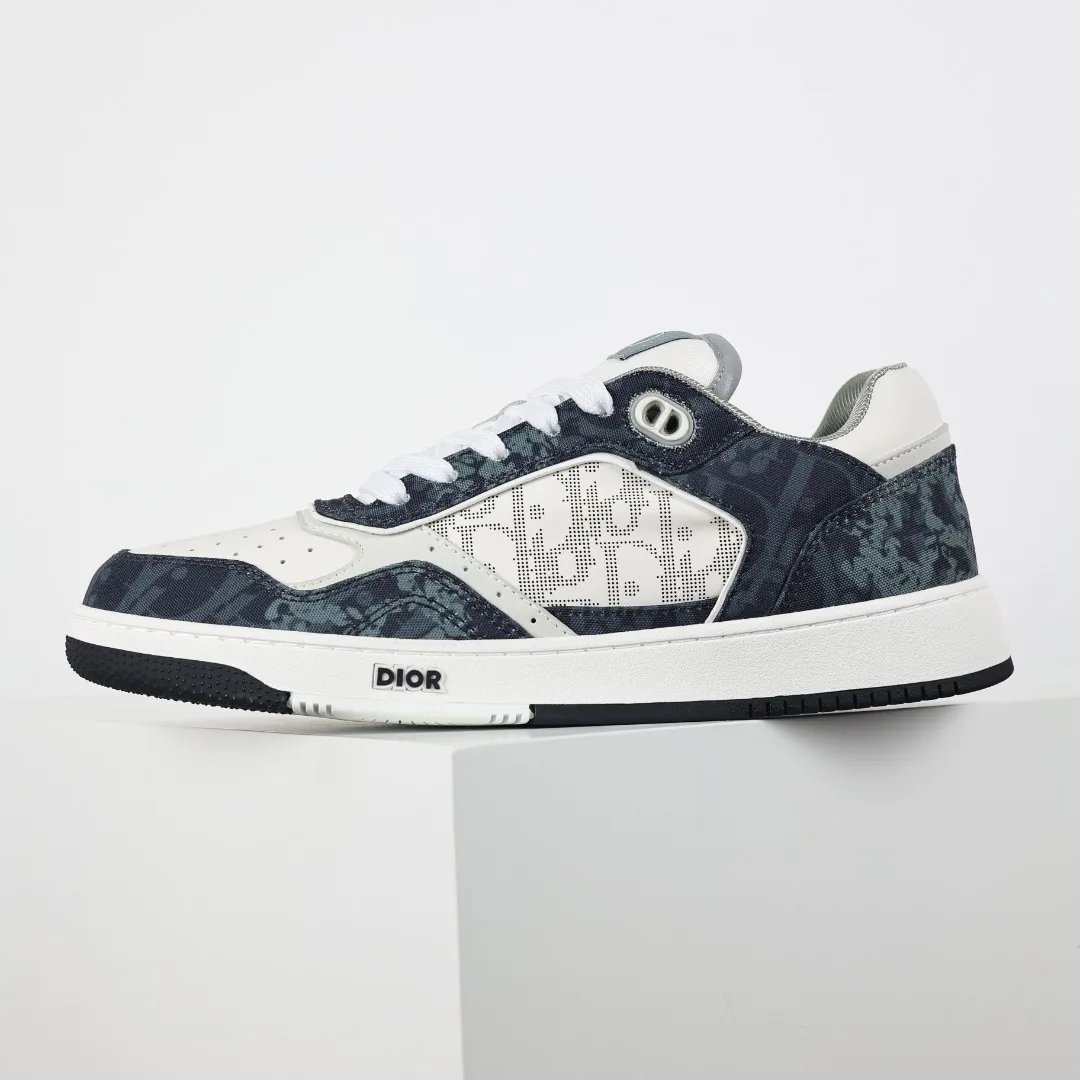 This B27 sneaker is a classic item from DIOR, meticulously crafted from smooth cowhide leather, featuring beige and black jacquard Oblique print trim (laser perforation) on the sides, complemented by CD icon eyelets, a two-tone rubber sole, and iconic details on the tongue and heel, making it more refined and stylish, suitable for various outfits. Available in blue, cream white, and DIOR gray smooth cowhide leather, with beige and black jacquard fabric oblique print, DIOR logo on the sole and eyelets, lace-up closure with CD icon eyelets, mesh fabric lining, two-tone rubber outsole, side seam stitching structure, includes dust bag and a pair of shoelaces, complete with authentic Italian packaging.