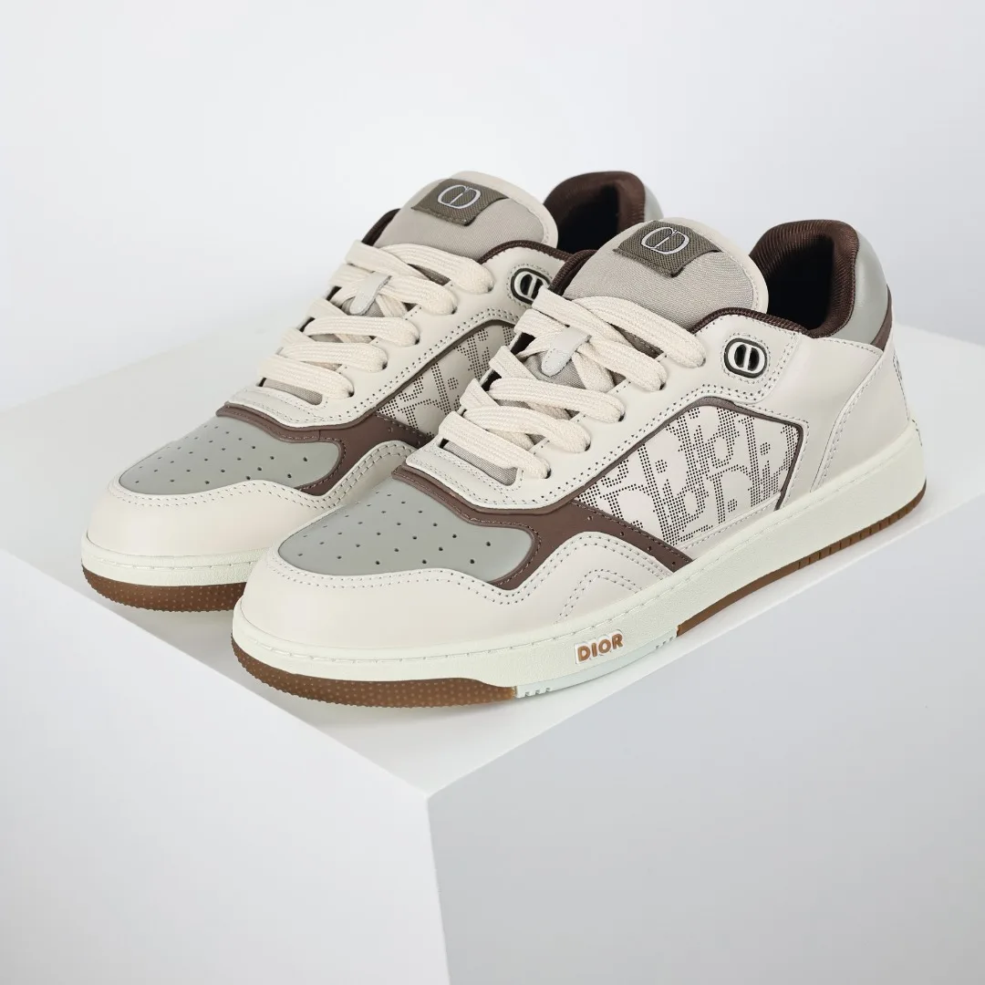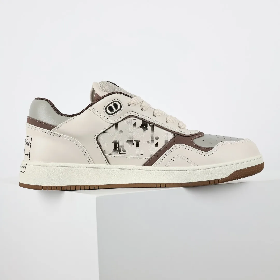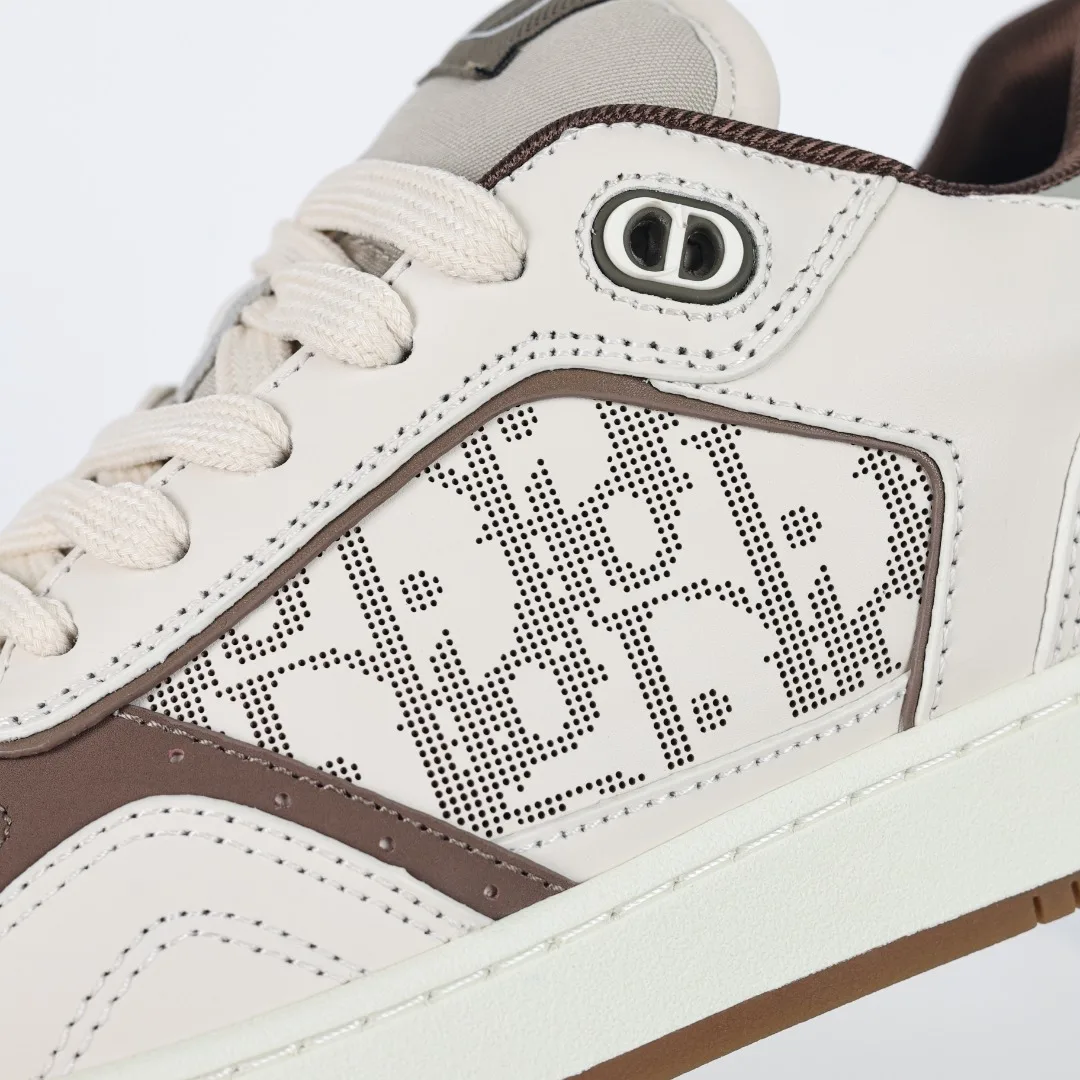 This B27 sneaker is a classic item from DIOR, meticulously crafted from smooth cowhide leather, featuring beige and black jacquard Oblique print trim (laser perforation) on the sides, complemented by CD icon eyelets, a two-tone rubber sole, and iconic details on the tongue and heel, making it more refined and stylish, suitable for various outfits. Available in blue, cream white, and DIOR gray smooth cowhide leather, with beige and black jacquard fabric Oblique print, the sole and eyelets adorned with the DIOR logo, lace-up closure with CD icon eyelets, mesh fabric lining, two-tone rubber outsole, side seam stitching structure, includes a dust bag and a pair of shoelaces, complete with Italian authentic packaging.