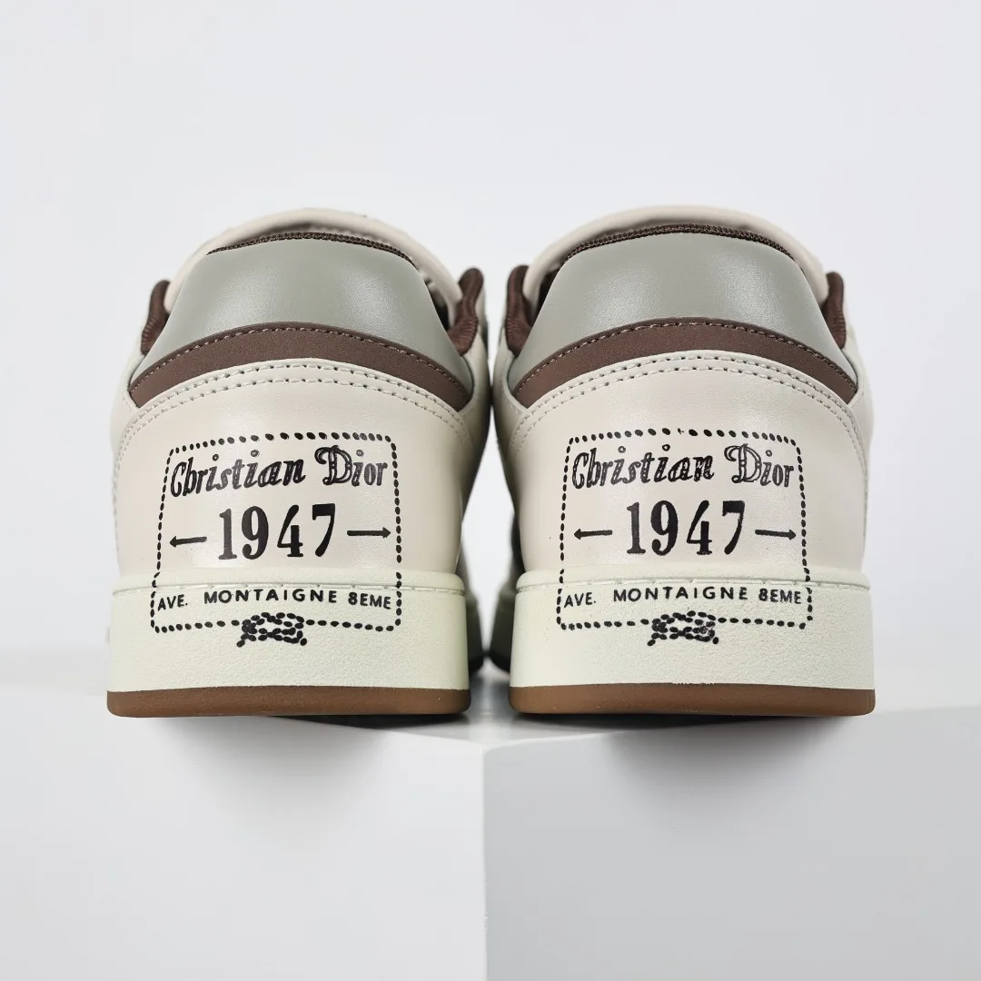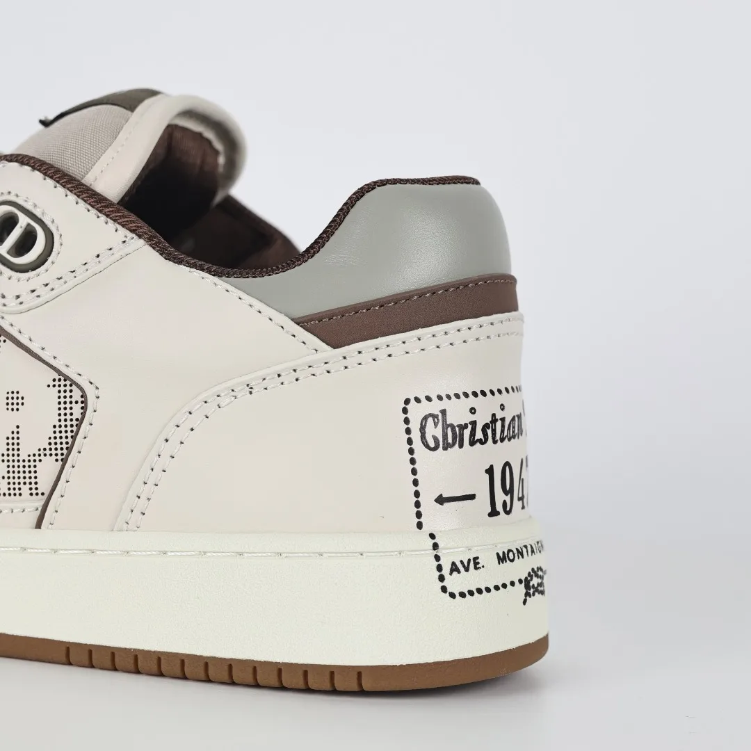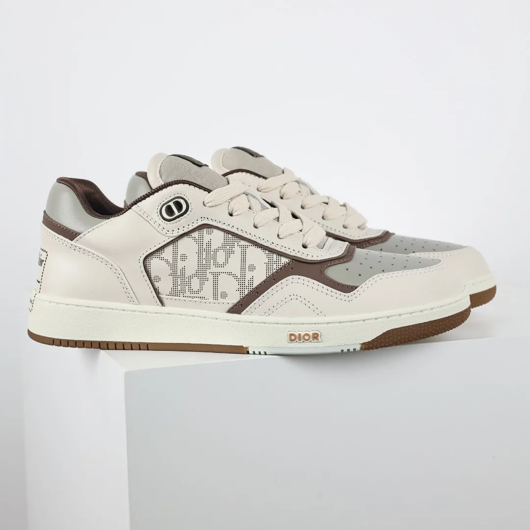 This B27 sneaker is a classic item from DIOR, meticulously crafted from smooth cowhide leather, featuring beige and black jacquard Oblique print trim (laser perforation) on the sides, complemented by CD icon eyelets, a two-tone rubber sole, and iconic details on the tongue and heel, making it more refined and stylish, suitable for various outfits. Available in blue, cream white, and DIOR gray smooth cowhide leather, with beige and black jacquard fabric Oblique print, the sole and eyelets adorned with the DIOR logo, lace-up closure with CD icon eyelets, mesh fabric lining, two-tone rubber outsole, side seam stitching structure, includes a dust bag and a pair of shoelaces, complete with Italian authentic packaging.