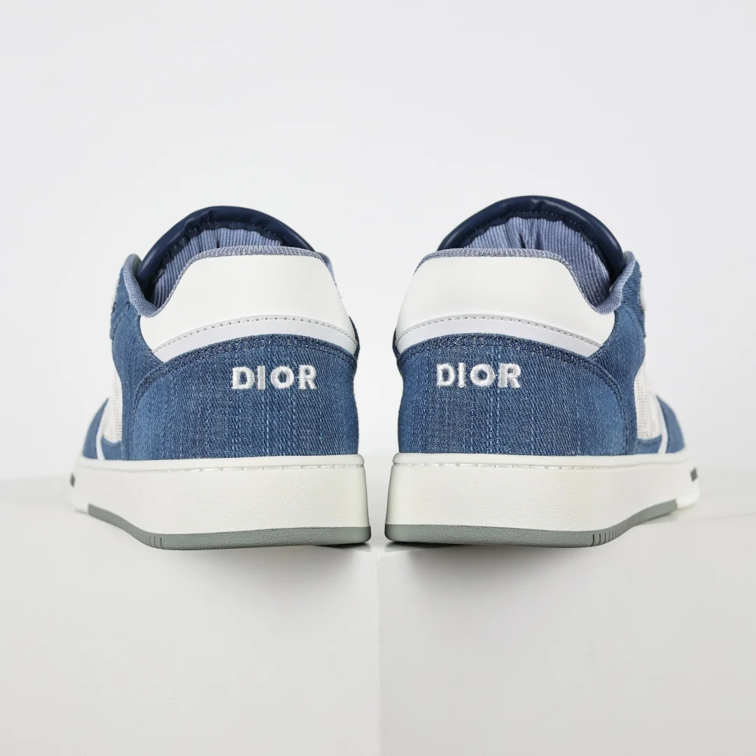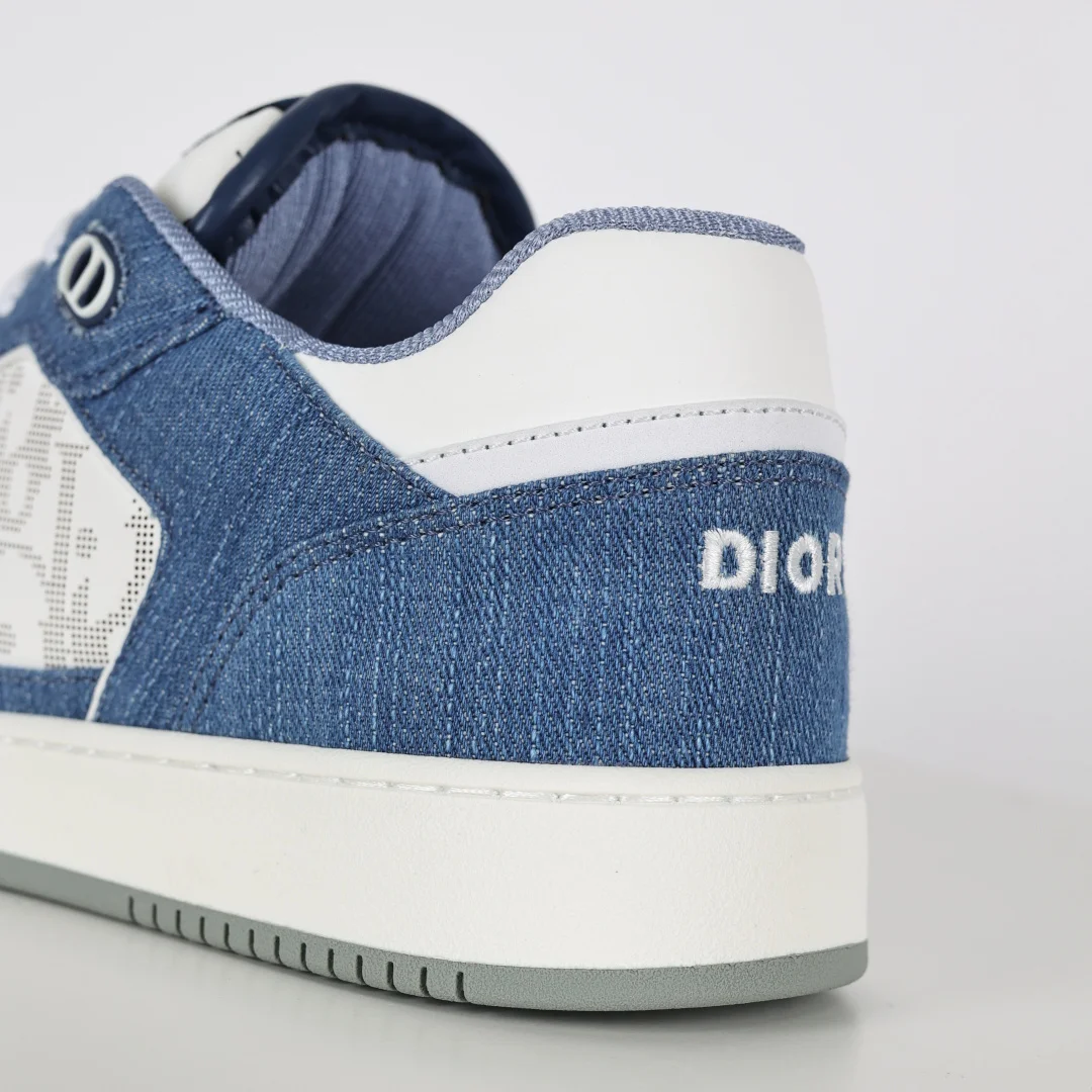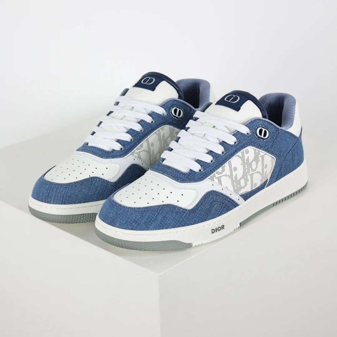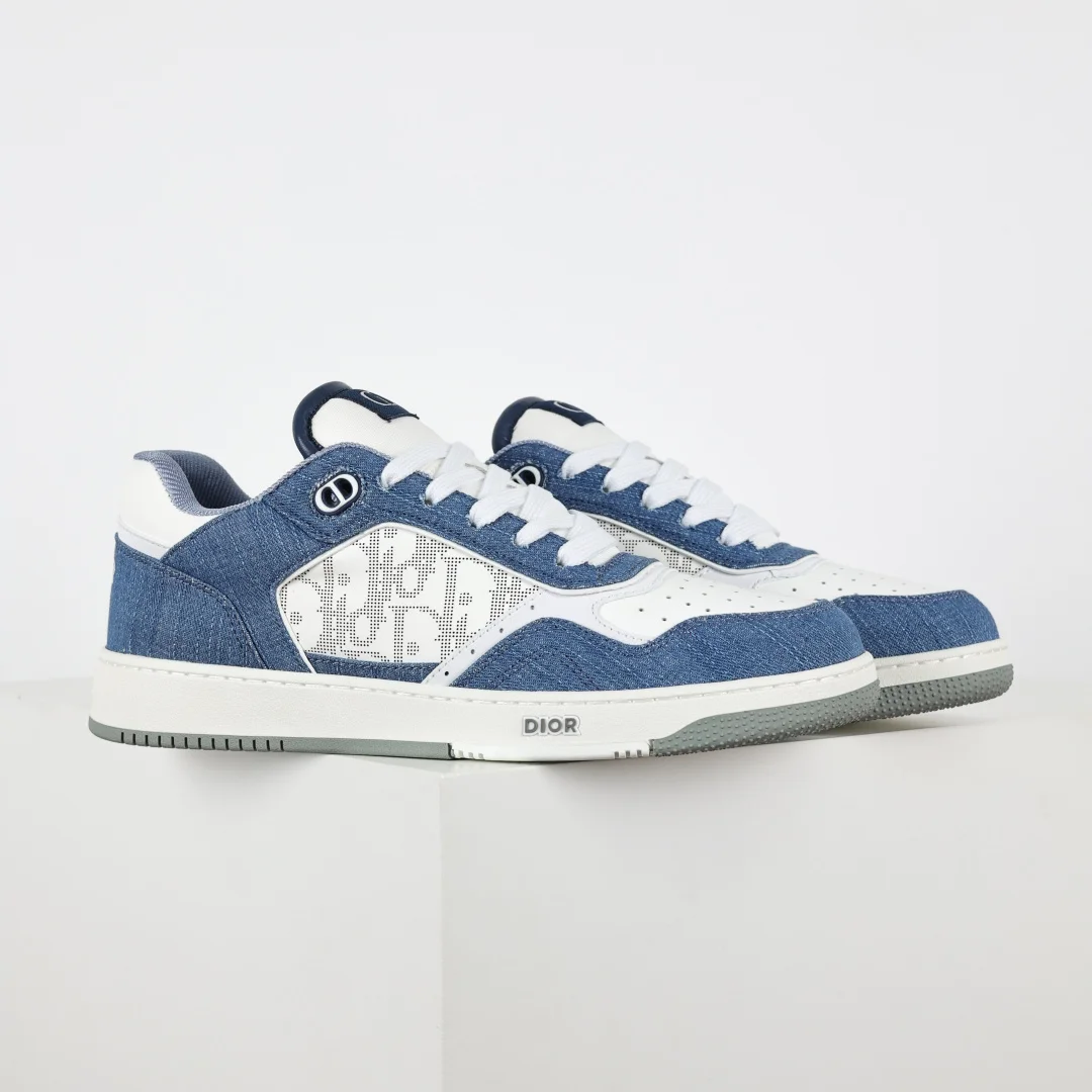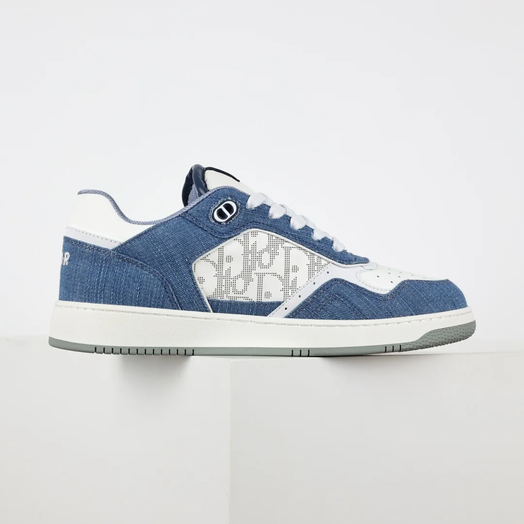 This B27 sneaker is a classic item from DIOR, meticulously crafted from smooth cowhide leather, featuring beige and black jacquard Oblique print trim (laser perforation) on the sides, complemented by CD icon eyelets, a two-tone rubber sole, and iconic details on the tongue and heel, making it more refined and stylish, suitable for various outfits. Available in blue, cream white, and DIOR gray smooth cowhide leather, with beige and black jacquard fabric Oblique print, DIOR logo on the sole and eyelets, lace-up closure with CD icon eyelets, mesh fabric lining, two-tone rubber outsole, side seam stitching structure, includes dust bag and a pair of shoelaces, complete set of authentic Italian packaging