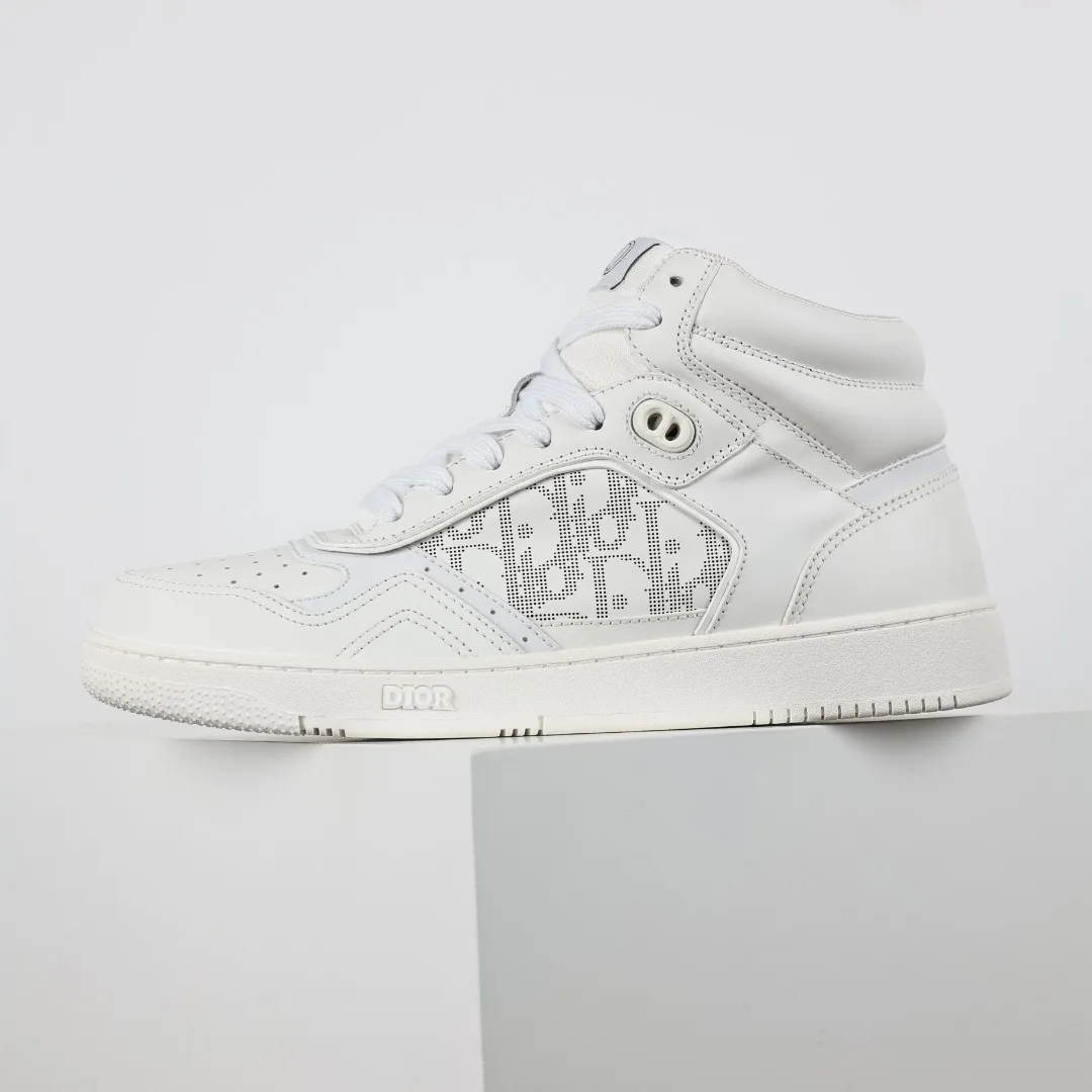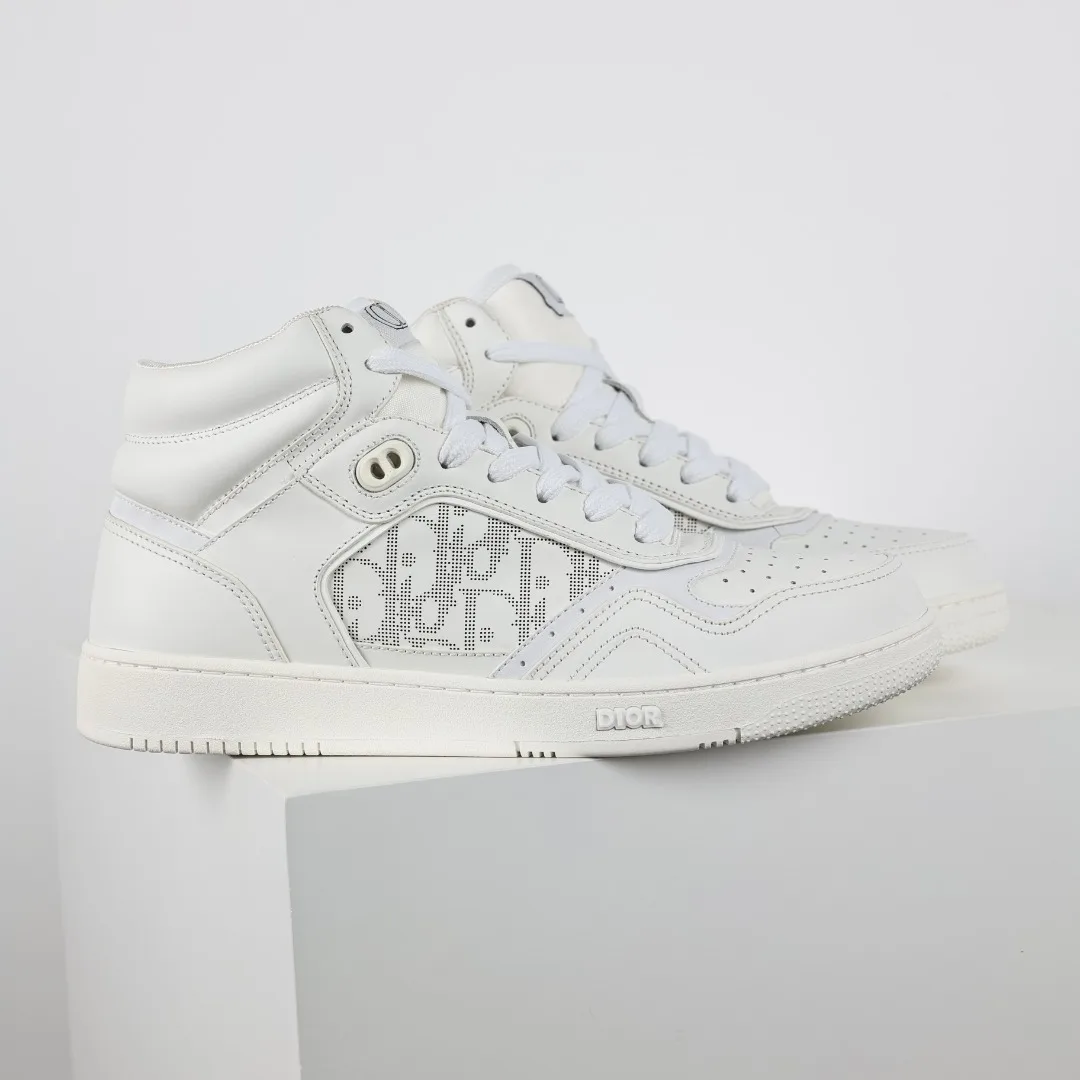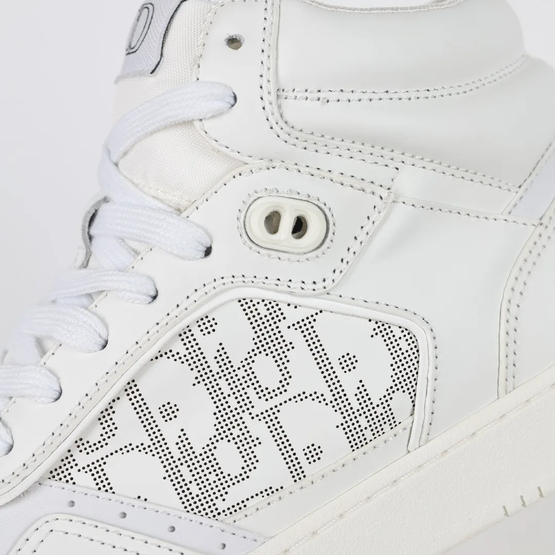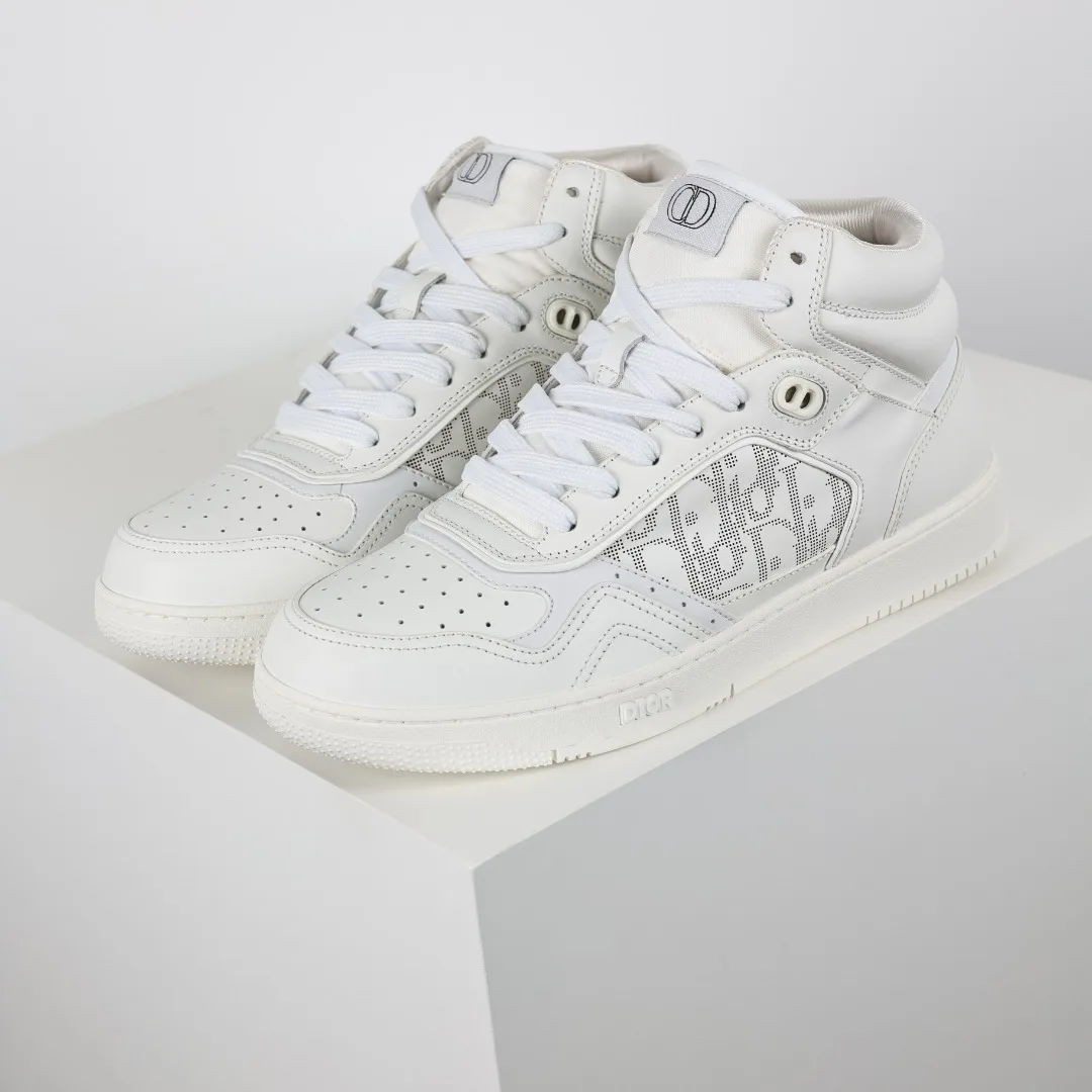 This B27 sneaker is a classic DIOR item, crafted with smooth DIOR calfskin, featuring beige and black jacquard Oblique print trim (laser perforated) on the side, paired with CD Icon eyelets, a two-tone rubber sole, and iconic details on the tongue and heel for added sophistication. Fashionable and versatile, it enhances various styles. Available in blue, cream white, and DIOR gray smooth calfskin, beige and black jacquard fabric Oblique print. The sole and eyelets are adorned with the DIOR logo. Lace-up closure with CD Icon eyelets, mesh fabric lining, two-tone rubber outsole, side-stitched construction. Includes dust bag and a pair of shoelaces. Full set of Italian authentic packaging.