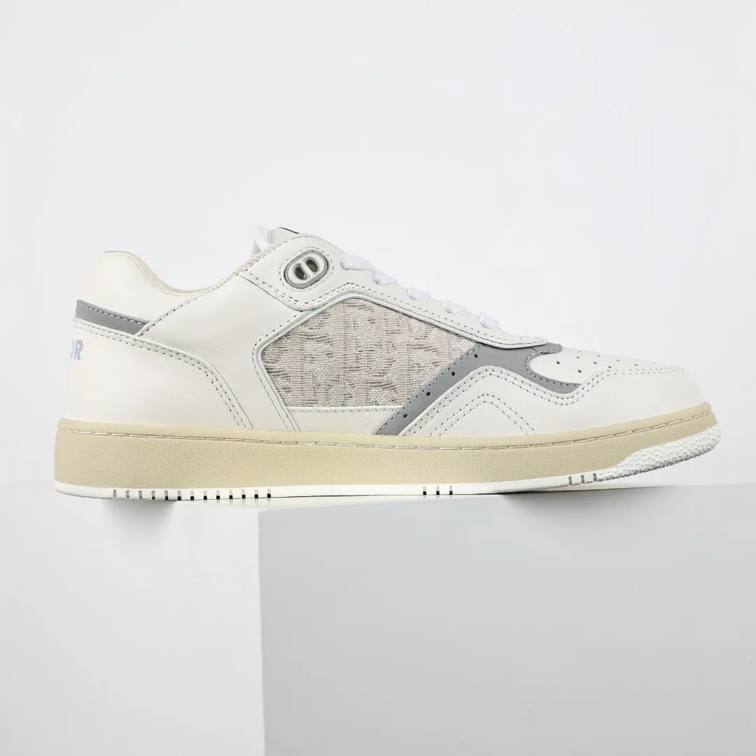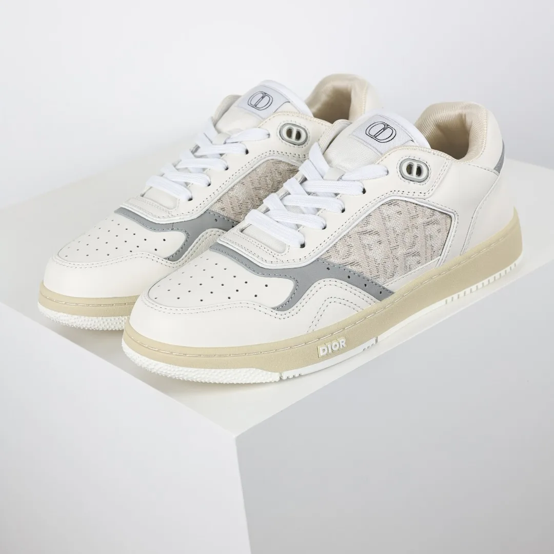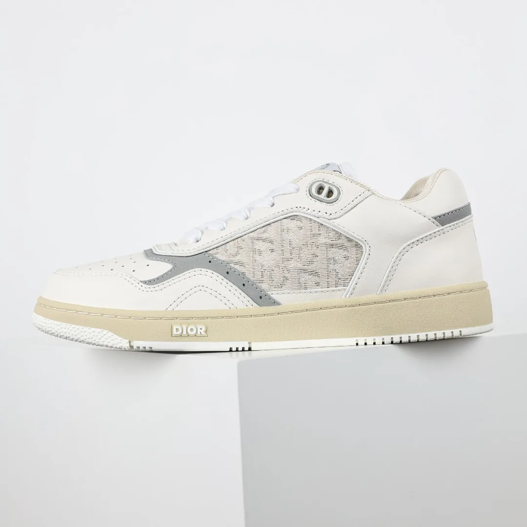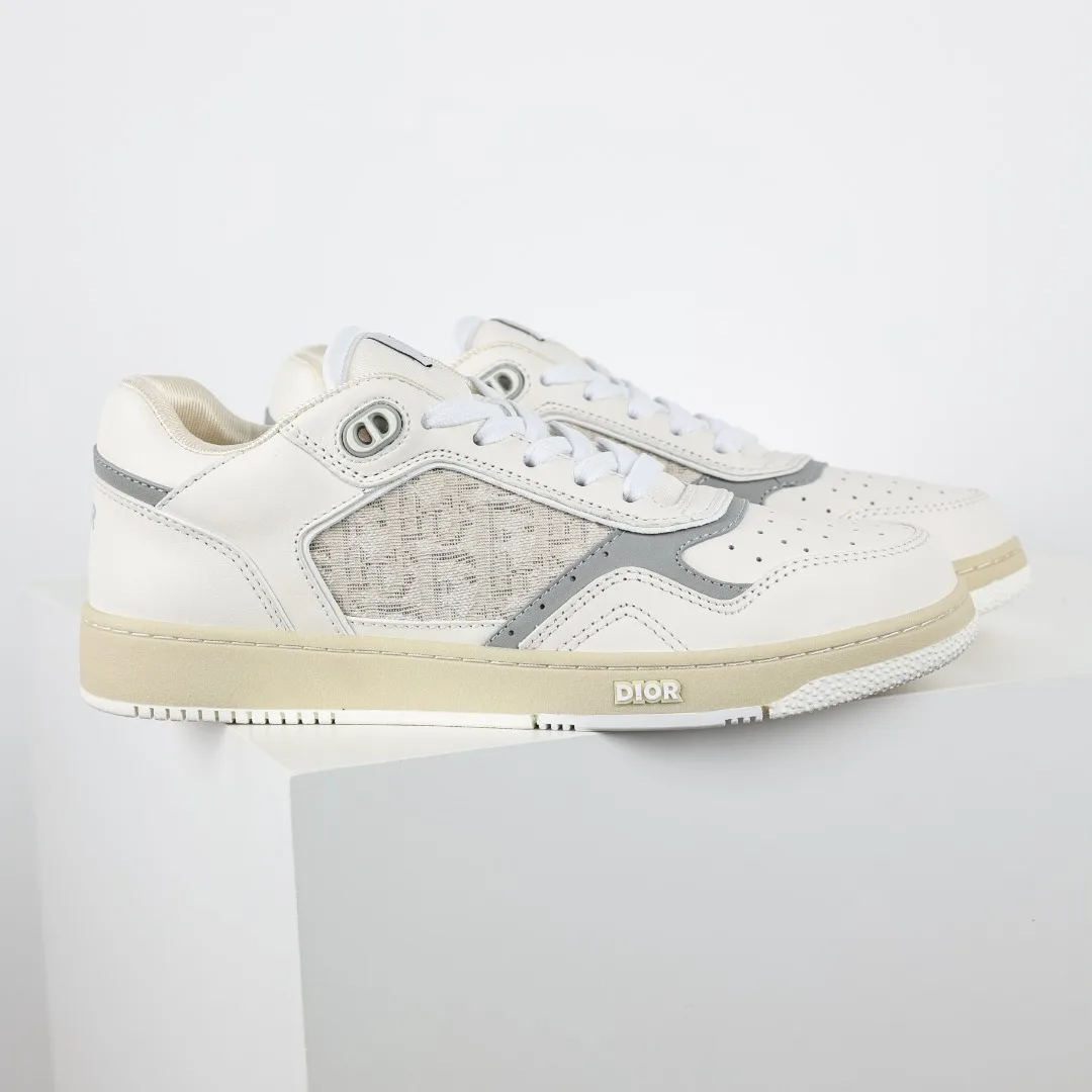 This B27 sneaker is a classic DIOR item, carefully crafted with smooth DIOR calfskin, with beige and black jacquard Oblique printed trim (laser perforated) on the side, paired with CD Icon eyelets, two-tone rubber sole, and iconic details on the tongue and heel, making it more refined, stylish and versatile, adding brilliance to various styles. Blue, Cream White, and Dior Gray smooth calfskin, Beige and Black jacquard fabric Oblique print, DIOR logo on the sole and eyelets, Lace-up closure with CD Icon eyelets, Mesh fabric lining, Two-tone rubber outsole, Side stitched construction, Includes dust bag and a pair of shoelaces, Full set of Italian authentic packaging