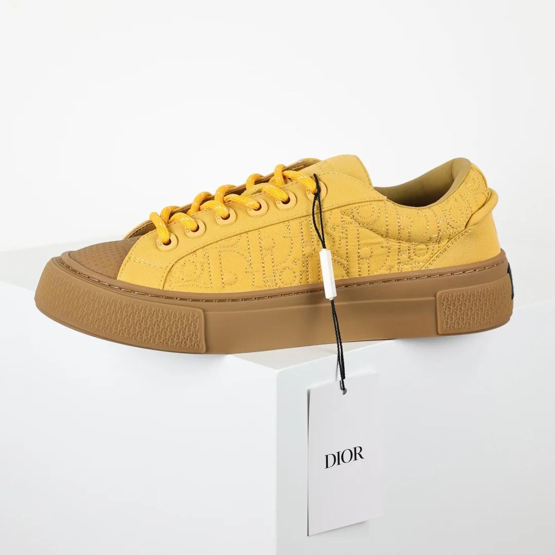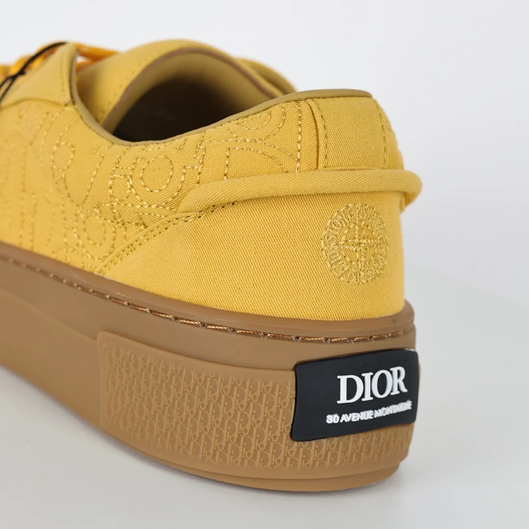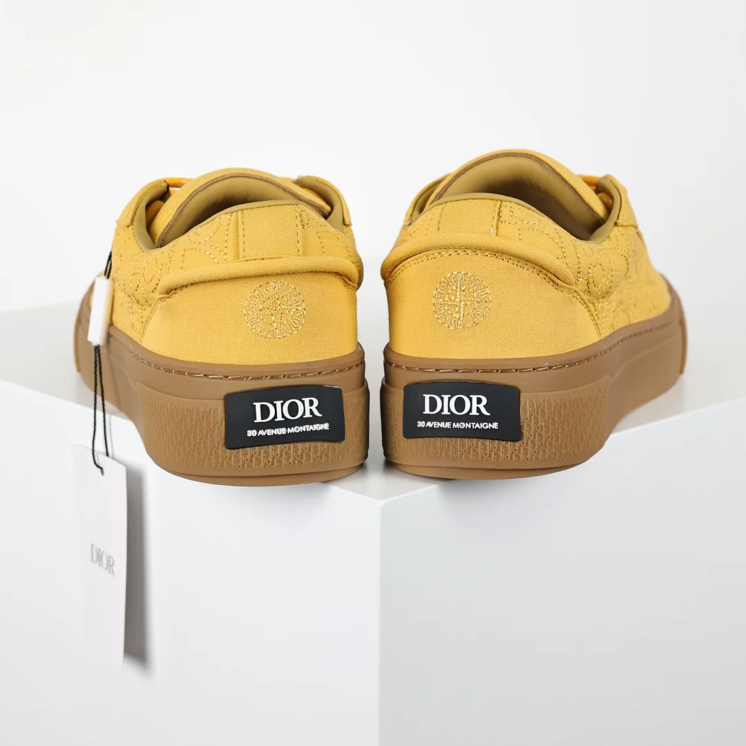 The upper features double-layer leather with a separated heel design and edge trim, reinterpreting the classic tennis shoe. The fashionable silhouette highlights a substantial feel, adorned with Oblique prints and complemented by suede leather inlays. A uniquely padded tongue is embellished with the D1or embossed logo, paired with navy blue mohair wide laces and matte brass eyelets in the same color tone. The white D1or Oblique patterned rubber sole is accented with the contrasting D1or 30 Avenue Montaigne logo on the back, enhancing the style and adding a fashionable touch to casual looks. Custom Oblique monogram + leather lining, custom lambskin + breathable mesh lining sole, exclusive original outsole mold differentiating it from any market version, complete original packaging and accessories consistent with retail stores.