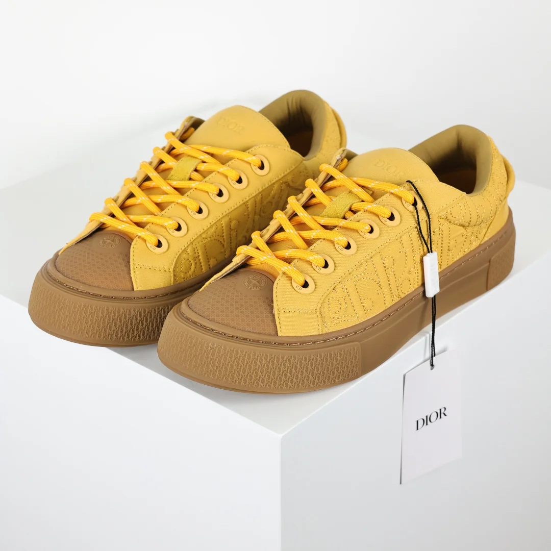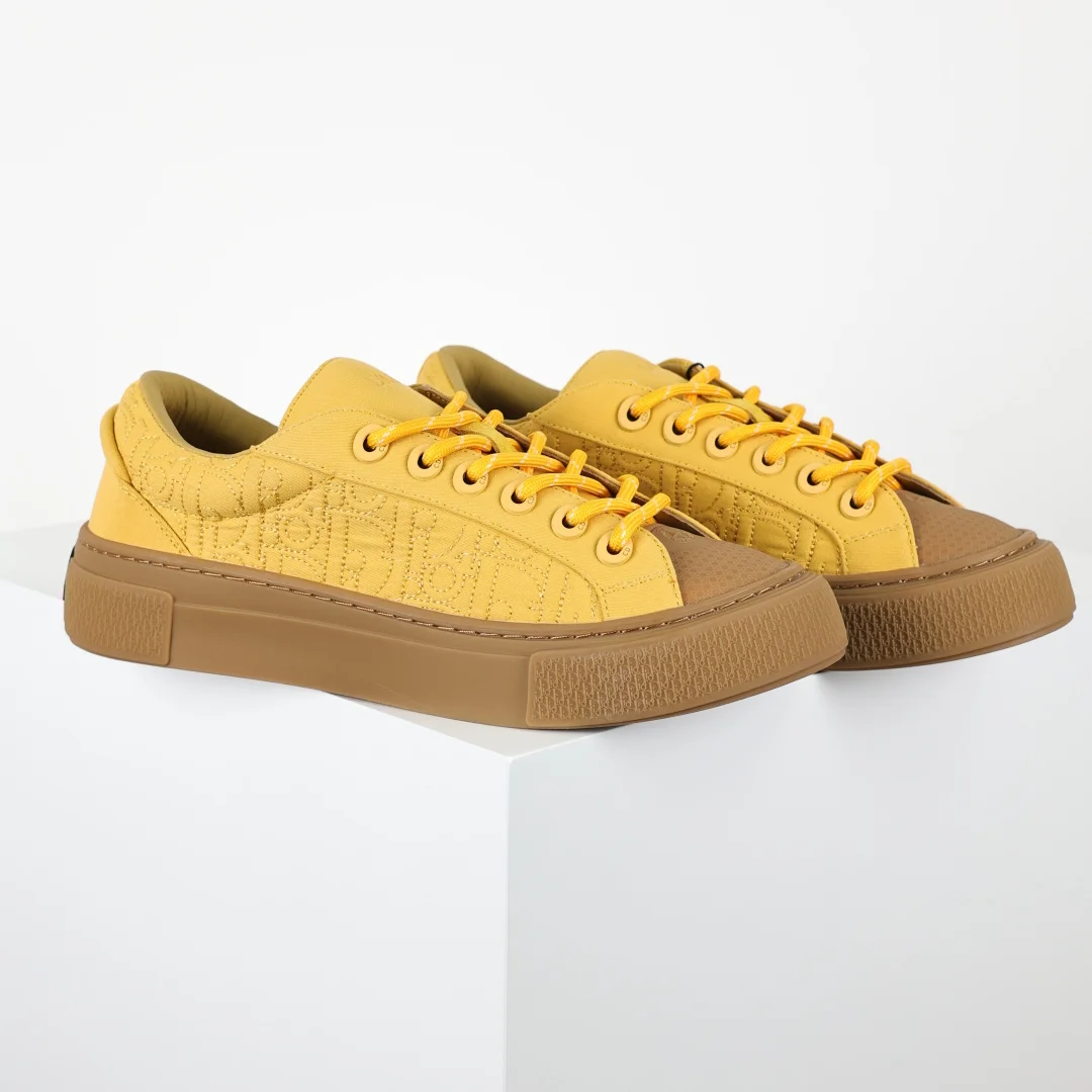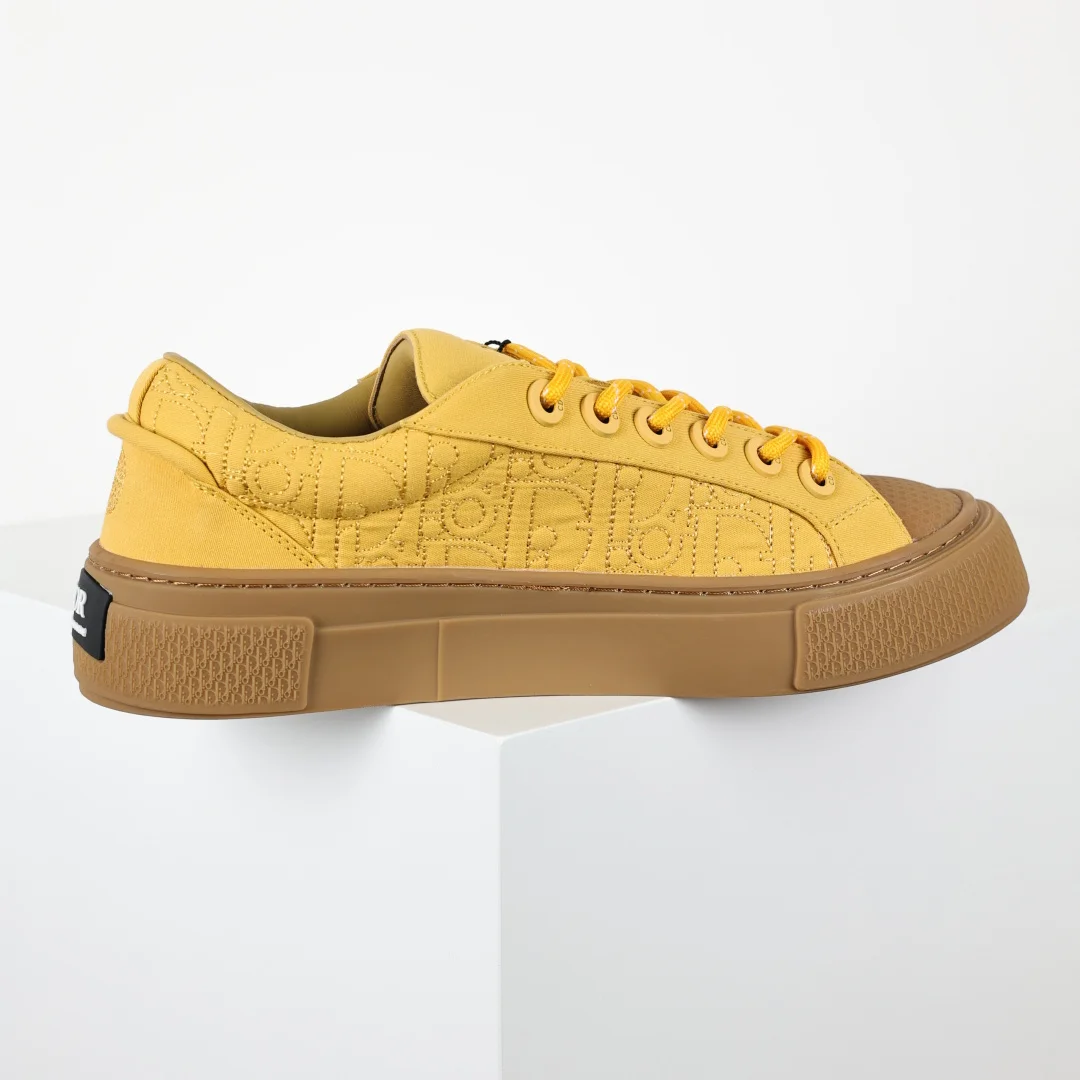 The upper features double-layer leather with a separated heel design and edge trim, reinterpreting the classic tennis shoe. The fashionable silhouette highlights a substantial feel, adorned with Oblique prints and complemented by suede leather inlays. A uniquely padded tongue is embellished with the D1or embossed logo, paired with navy blue mohair wide laces and matte brass eyelets in the same color tone. The white D1or Oblique patterned rubber sole is accented with the contrasting D1or 30 Avenue Montaigne logo on the back, enhancing the style and adding a fashionable touch to casual looks. Custom Oblique monogram + leather lining, custom lambskin + breathable mesh lining sole, exclusive original outsole mold differentiating it from any market version, complete original packaging and accessories consistent with retail stores.