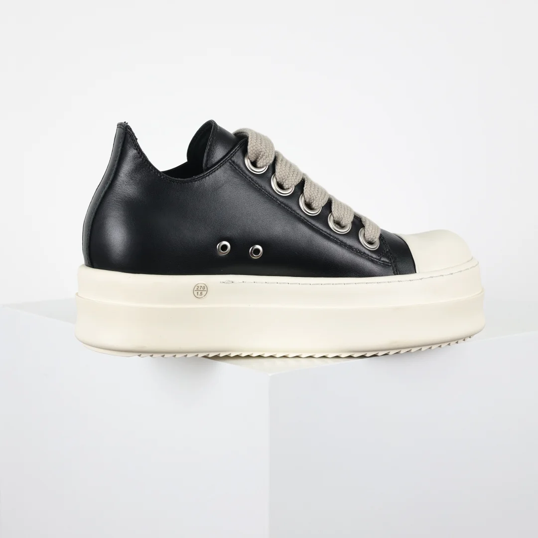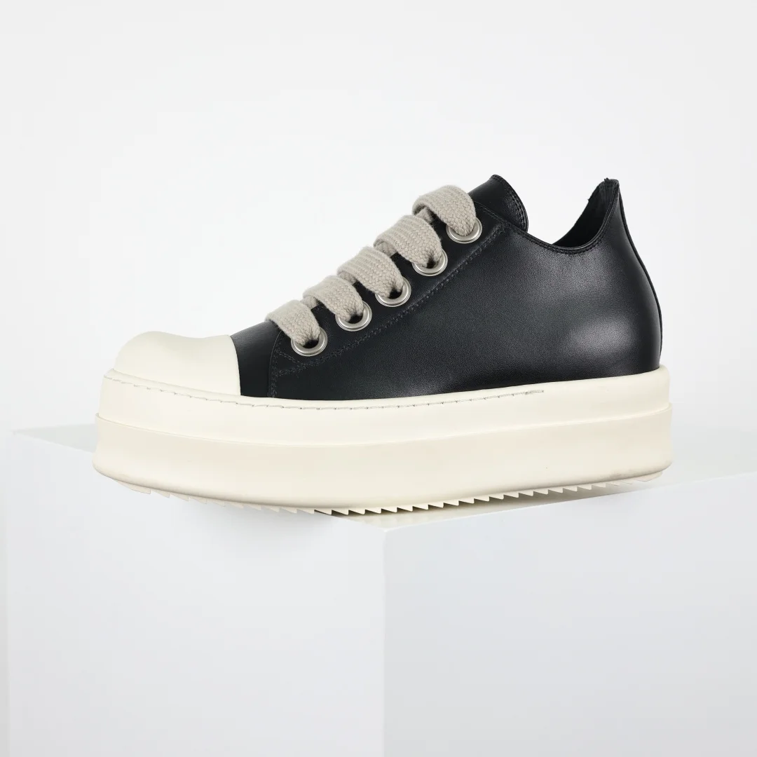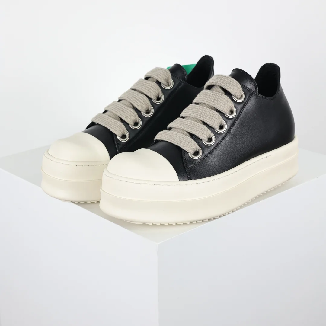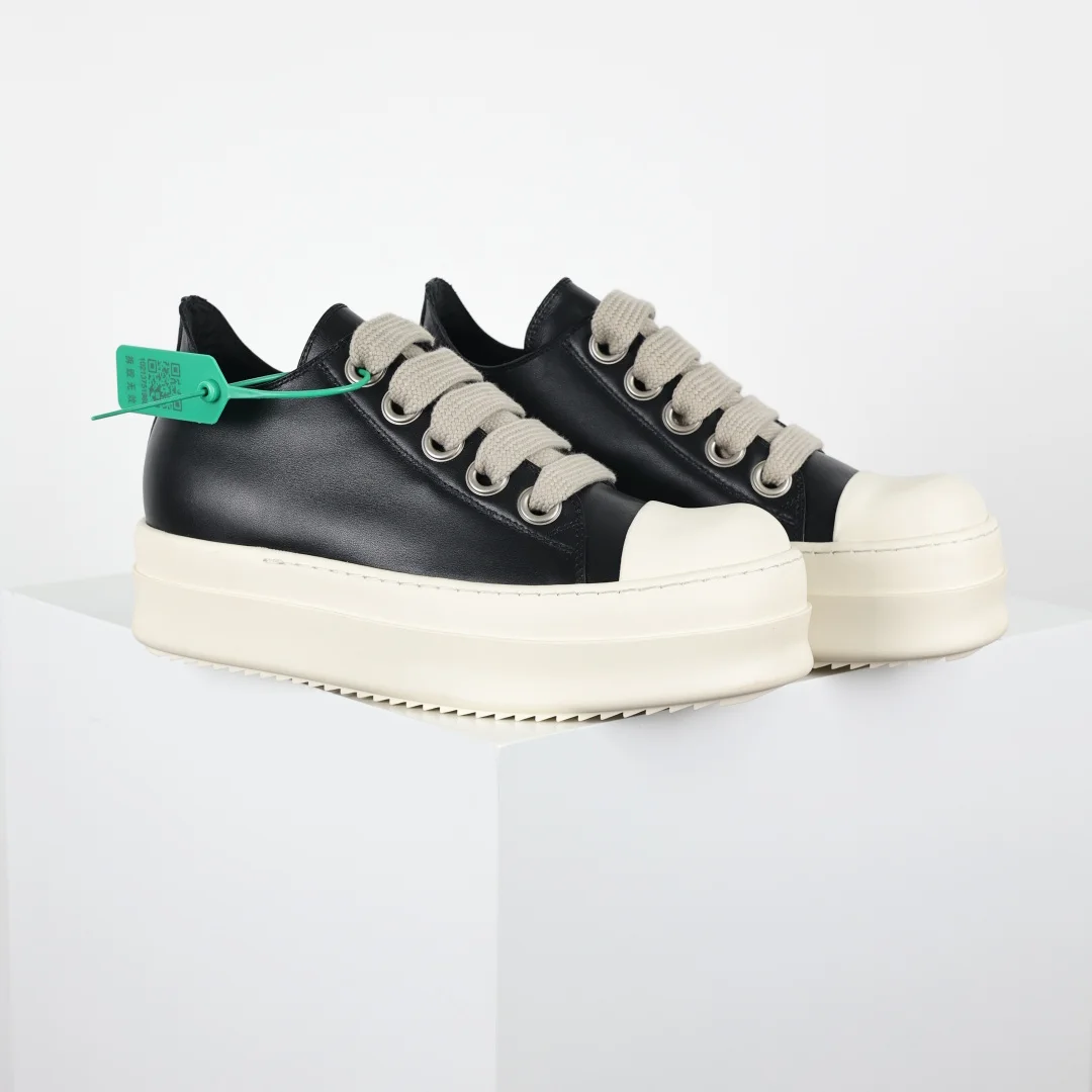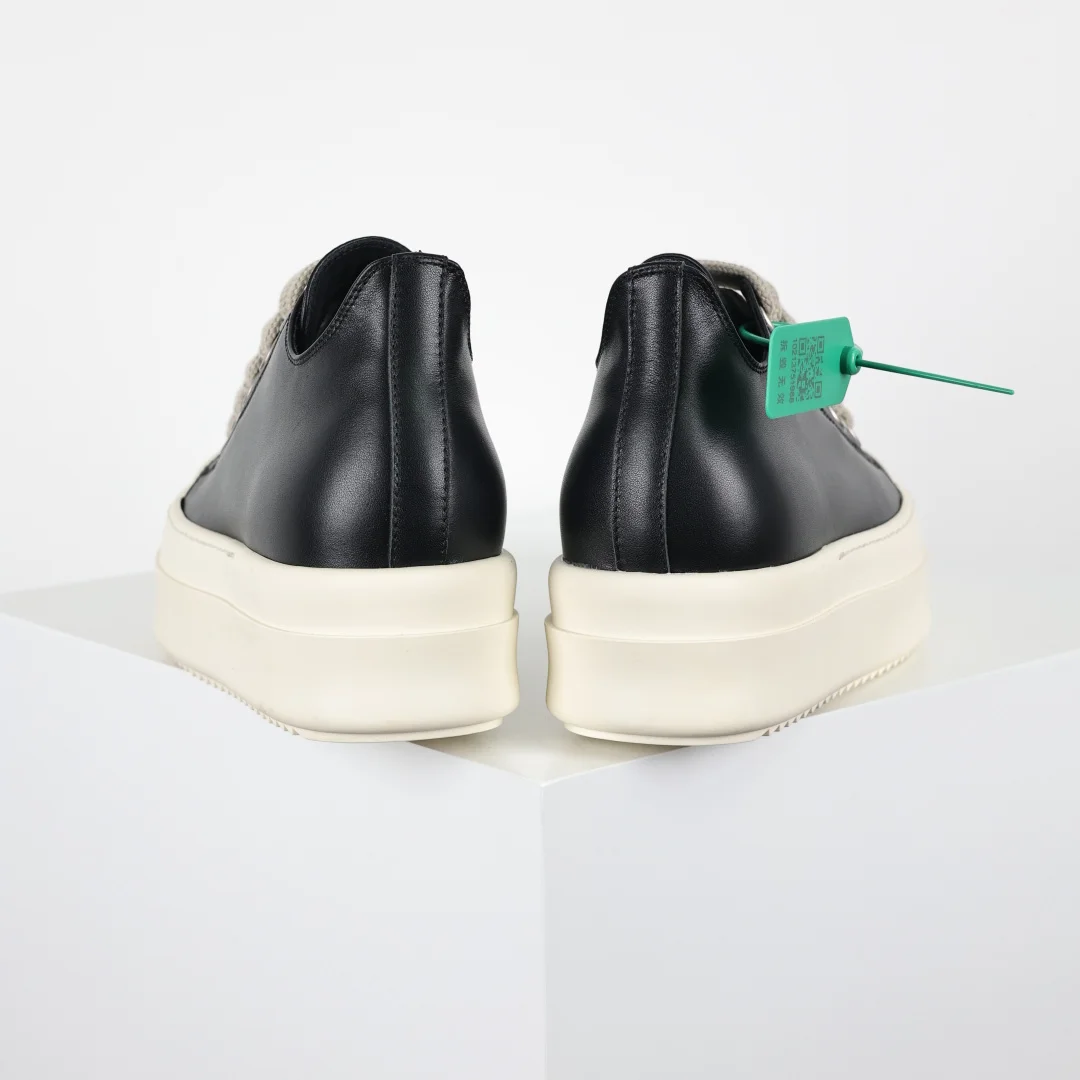 X1 Rick Owens Drkshdw Low-Top Leather Fashion Sneakers Black and White Thick Sole, resale market price already exceeds 7K. Platform customers can freely sell at four-figure prices. RO Guangdong original factory product, pure original top tier, 1:1 replica of the original. Authentic guaranteed. Restoration degree reaches over 98%. Original last development, paper pattern. ZP disassembled original 1:1 replica molding and cutting paper pattern, striving for 0 misalignment to achieve the same shoe shape as the authentic product. Imported CNC machine tool development, exclusive TPU milky fragrance sole, different from all versions on the market. ZP sourced full-grain calfskin, achieving the same feel as the authentic product. Original factory imported fine-grained fabric, Wanbang ordered original high-elastic pink sponge. The interior is matched with soft and delicate sheepskin. TPU high-density sole, the hardness and light transmittance have been tested and are consistent with the original.