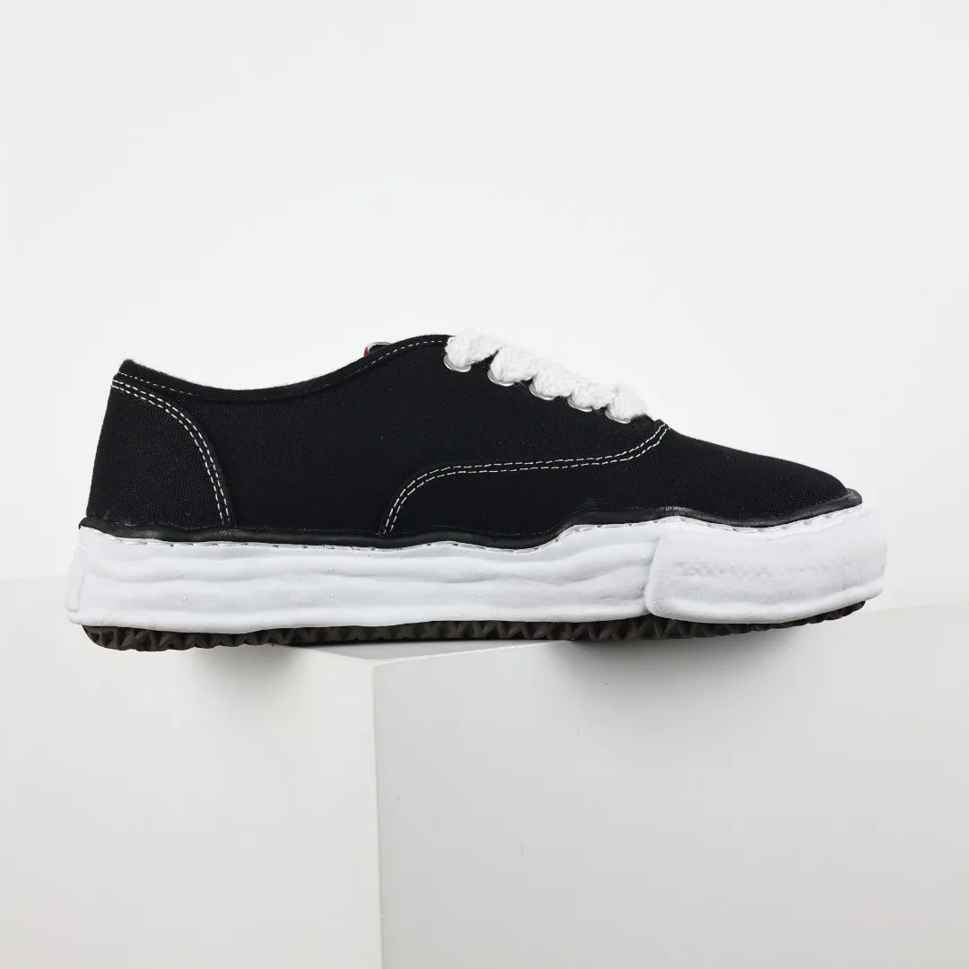 Dongguan Original Production Original Last and Paper Pattern Development Newly Developed Dual-Mode One-Time Foaming Pointed Air Hole EVA Midsole Embedded Combination RB Rubber Wear-Resistant Outsole Full Grain First Layer Leather Upper Material Correct Woven Label and Packaging Box Clear Heel Embroidered LOGO Differentiate from Ordinary Versions on the Market Retro Dissolving Style, Japanese Conceptual Fashion Designer Mihara Yasuhiro Brand MMY/Maison MIHARA YASUHIRO Wayne Original Sole Leather Low Sneaker Deformed Dissolving Ice Cream Bottom Low-Top Versatile Casual Sports Sneakers VANS Black Canvas