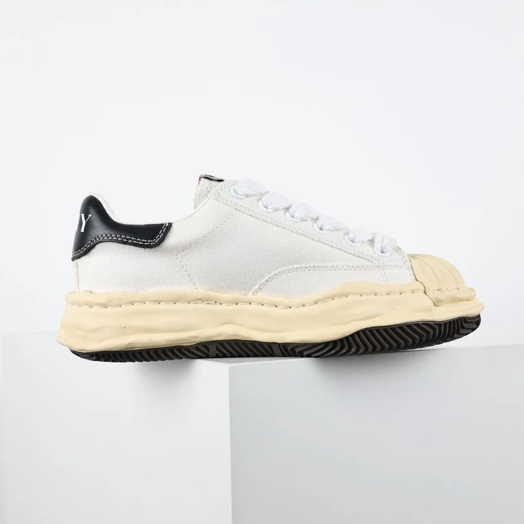 Dongguan Original Production Original Last and Paper Pattern Development Newly Developed Dual-Mold One-Time Foaming Dot-Matrix Air Hole EVA Midsole Embedded Combination RB Rubber Wear-Resistant Outsole Made of Full Grain First Layer Leather Upper Material Correct Woven Label and Packaging Box Clear Heel Embroidery LOGO Differentiated from Ordinary Versions on the Market Retro Dissolving Style, Japanese Conceptual Fashion Designer Mihara Yasuhiro Brand MMY/Maison MIHARA YASUHIRO Wayne Original Sole Leather Low Sneaker Deformed Dissolving Ice Cream Sole Low-Top Versatile Casual Sports Skate Shoes Shell Toe White Cloth Yellow Sole