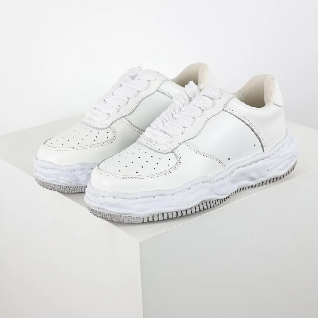 Dongguan Original Production Original Last and Paper Pattern Development Newly Developed Dual-Mold One-Time Foaming Pointed Air Hole EVA Midsole Embedded Combination RB Rubber Wear-Resistant Outsole Full Grain First Layer Leather Upper Material Correct Woven Label and Packaging Box Clear Heel Embroidered LOGO Differentiate from Ordinary Versions on the Market Retro Dissolving Style, Japanese Conceptual Fashion Designer Mihara Yasuhiro Brand MMY/Maison MIHARA YASUHIRO Wayne Original Sole Leather Low Sneaker Deformed Dissolving Ice Cream Sole Low-Top Versatile Casual Sports Skate Shoes Air Force White Leather