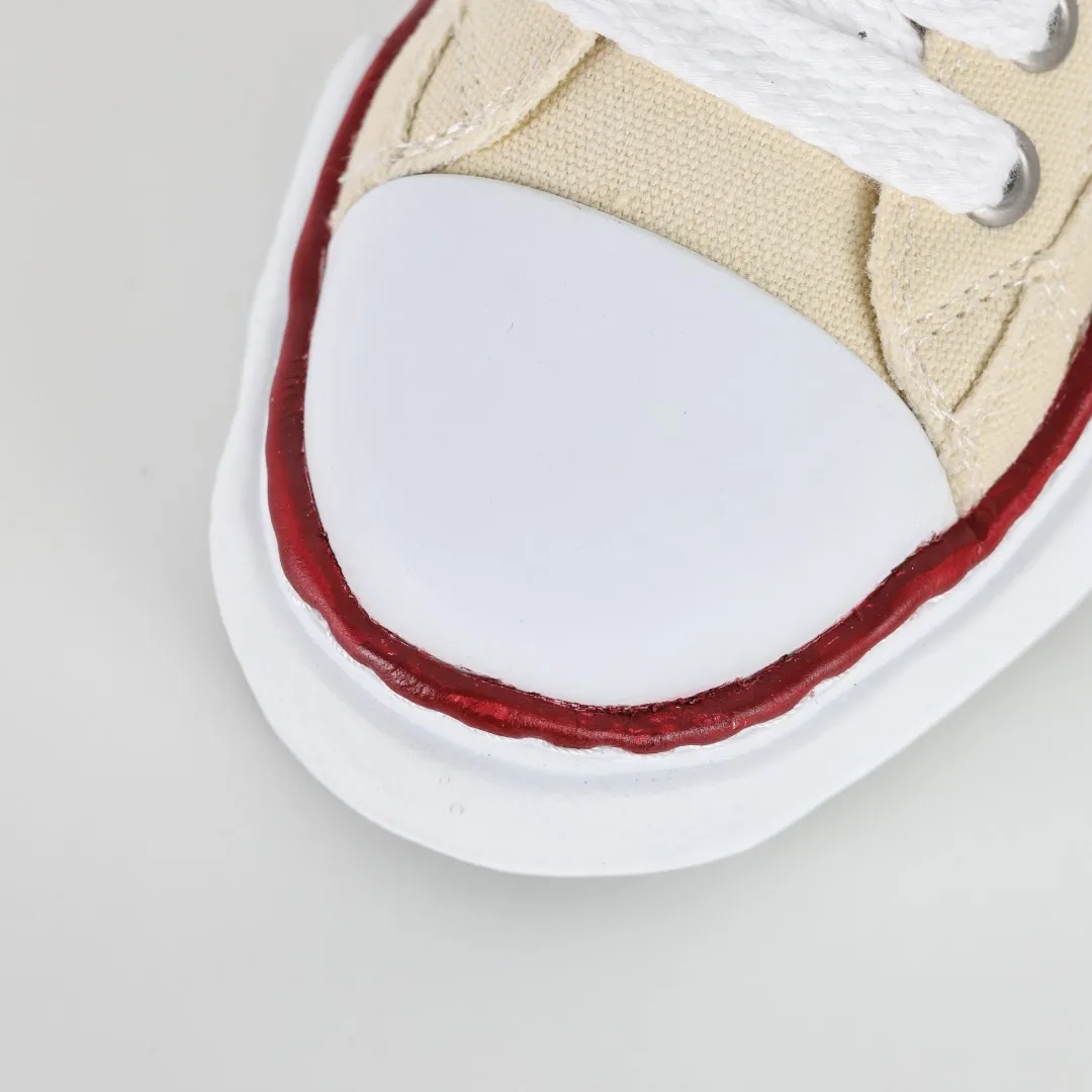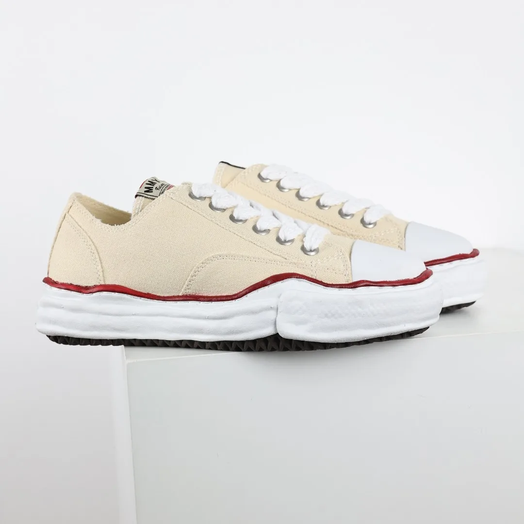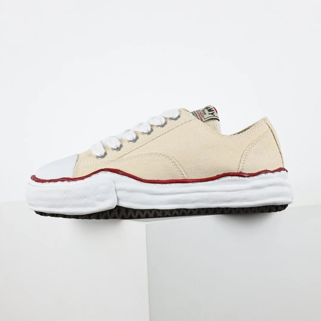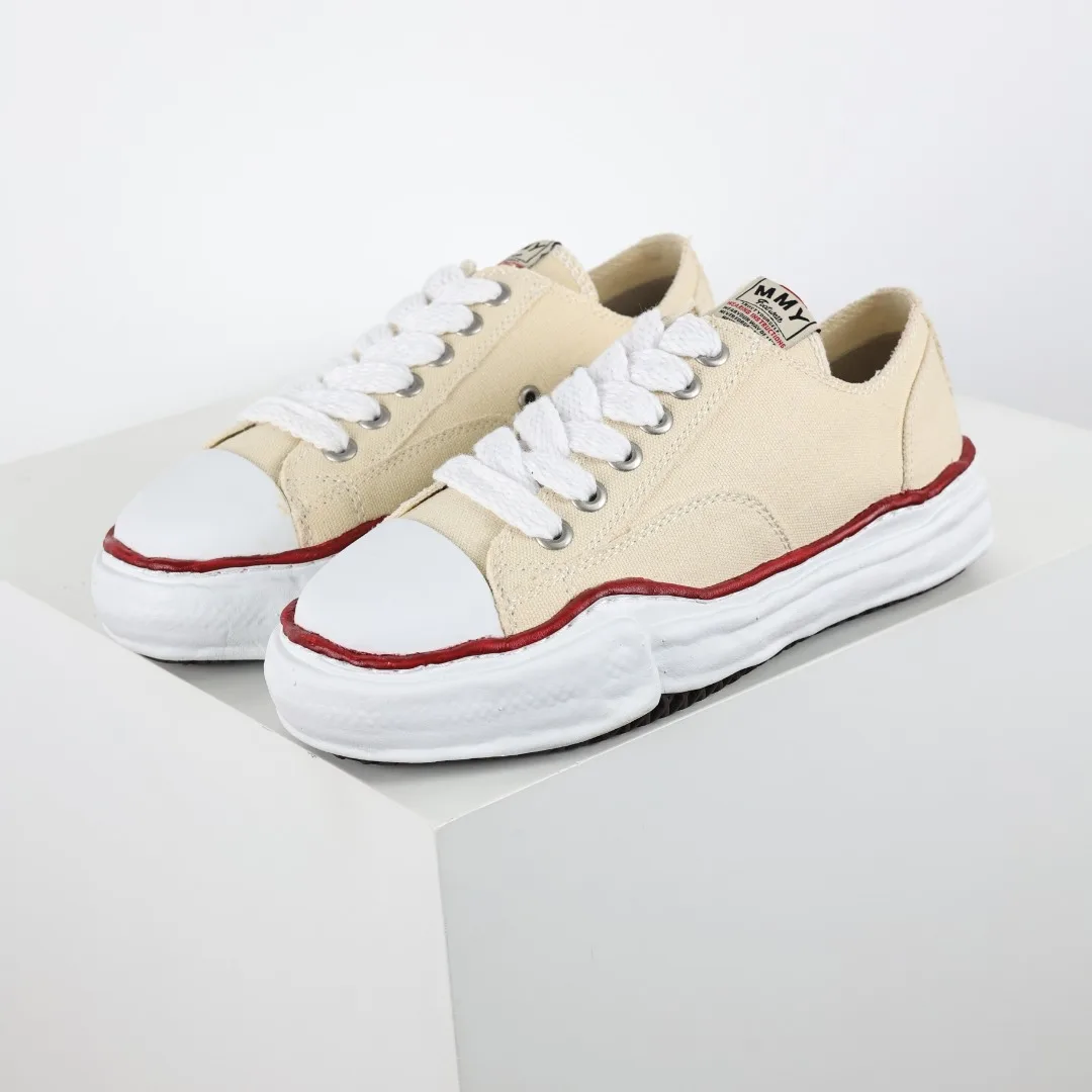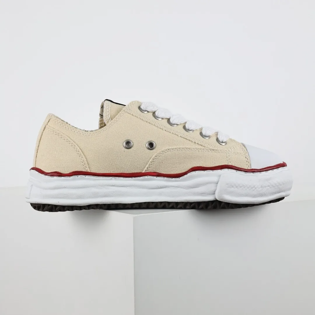 Dongguan Original Production Original Last and Paper Pattern Development Newly Developed Dual-Mold One-Time Foaming Pointed Air Hole EVA Midsole Embedded Combination RB Rubber Wear-Resistant Outsole Full Grain First Layer Leather Upper Material Correct Woven Label and Packaging Box Clear Heel Embroidered LOGO Differentiate from Ordinary Versions on the Market Retro Dissolving Style, Japanese Conceptual Fashion Designer Mihara Yasuhiro Brand MMY/Maison MIHARA YASUHIRO Wayne Original Sole Leather Low Sneaker Deformed Dissolving Ice Cream Bottom Low-Top Versatile Casual Sports Sneakers Converse Beige Fabric